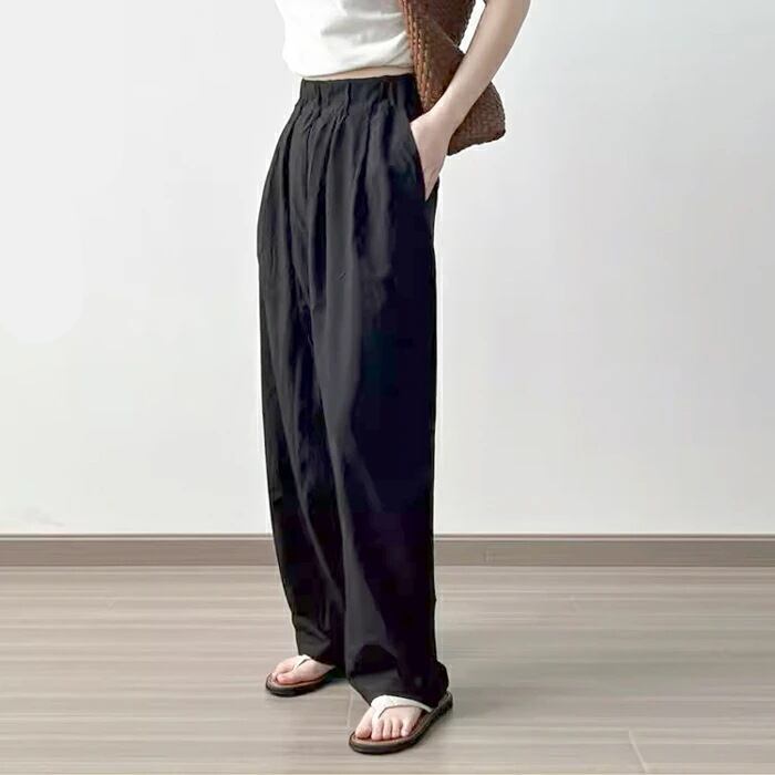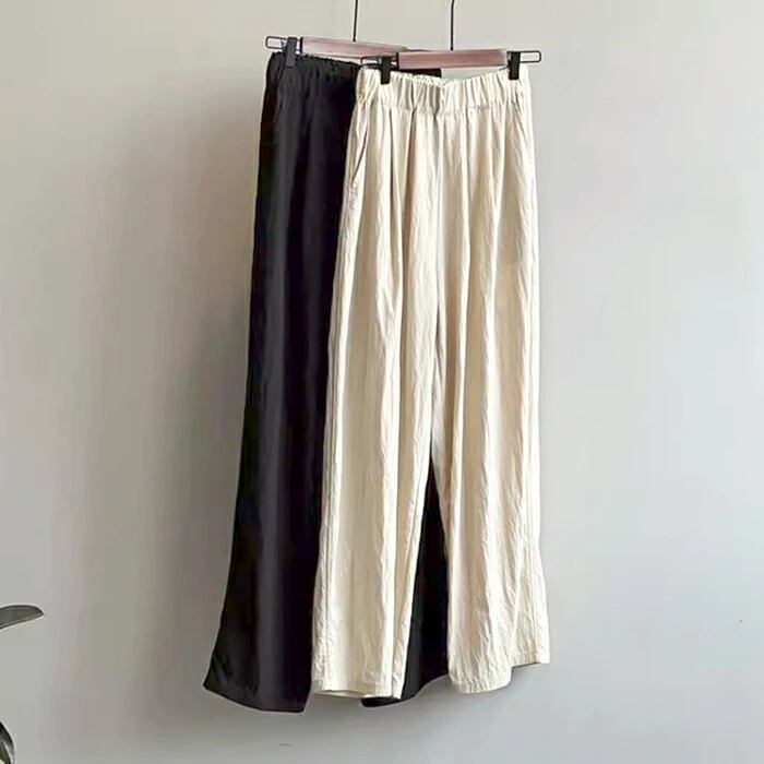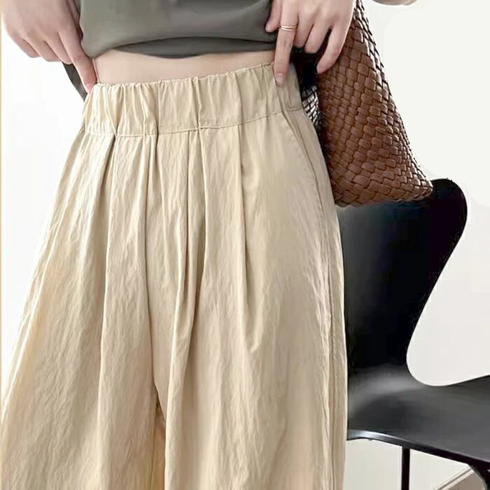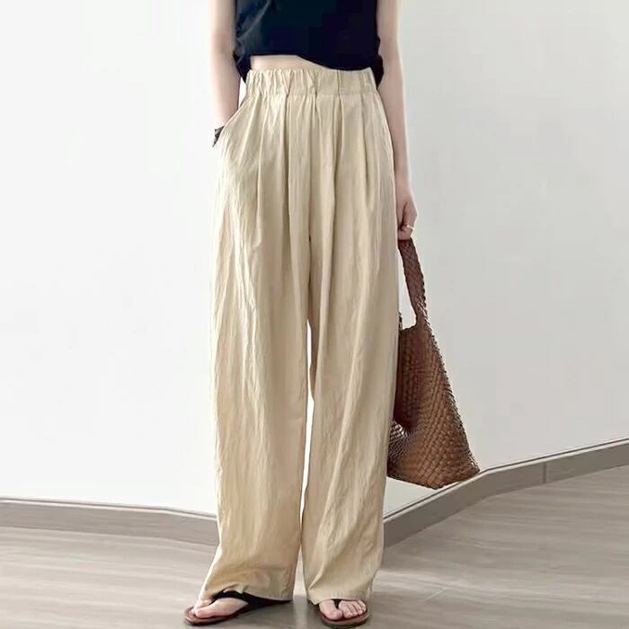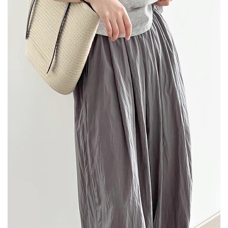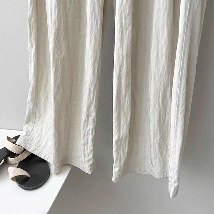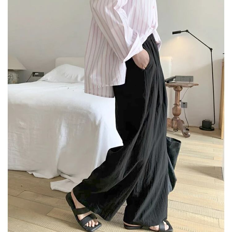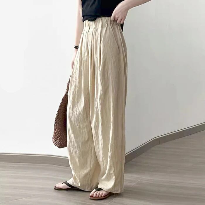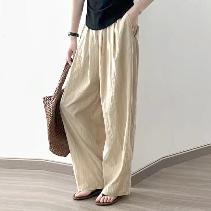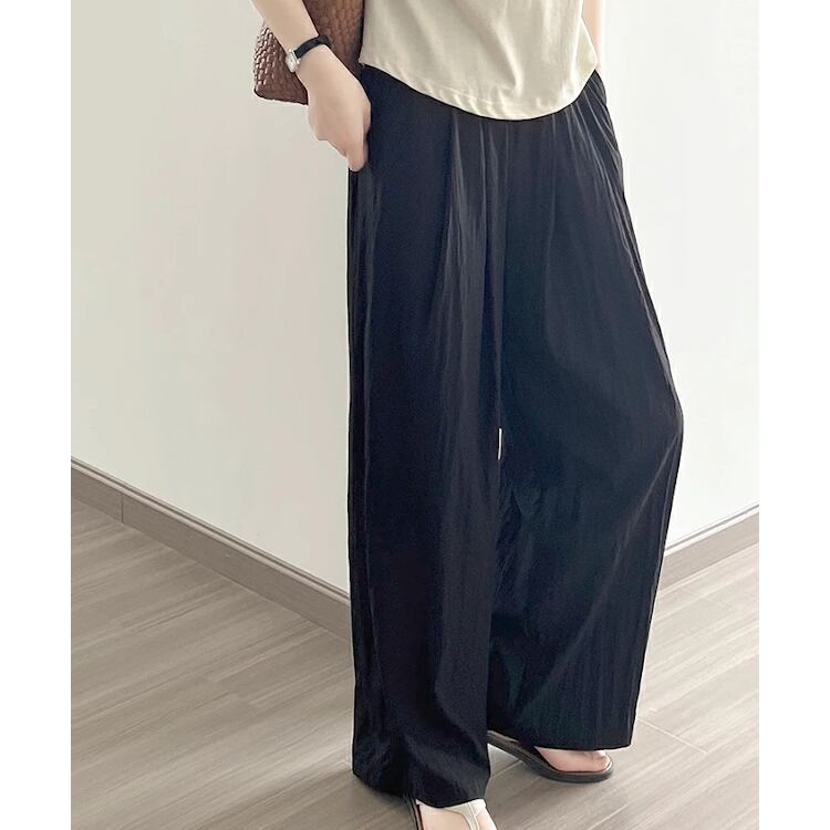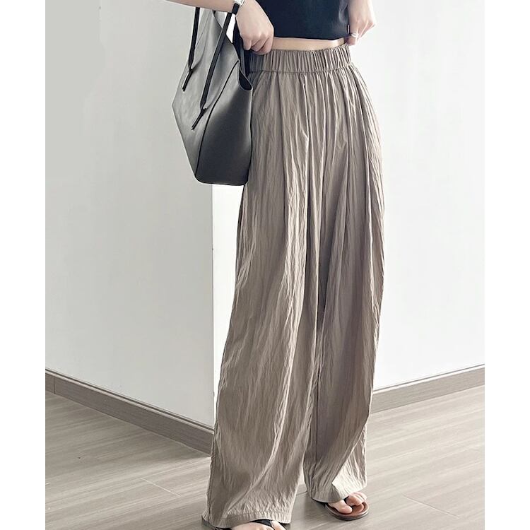 軽やかなシワ加工が魅力のワイドパンツは、リラックス感がありながらも上品な印象を与える一枚です。