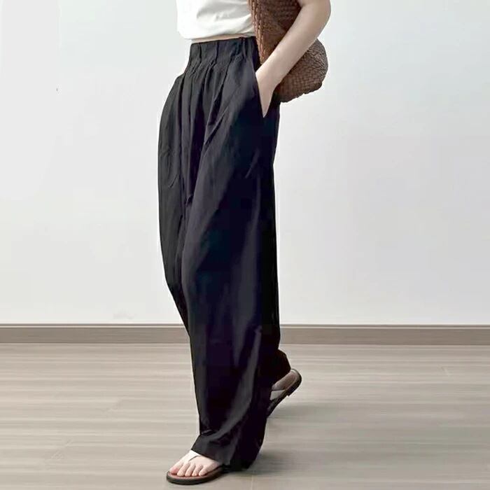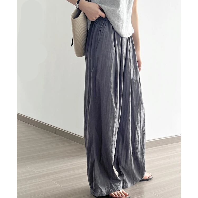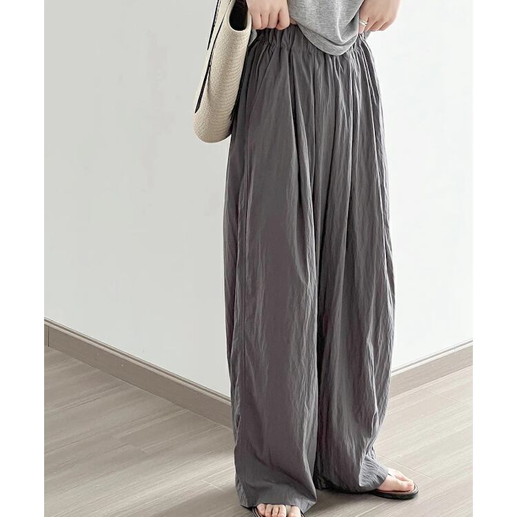 レディース パンツ ボトムス ワイドパンツ ロング ポケット ハイウエスト ウエストゴム ギャザー シワ加工 かわいい 大人可愛い シンプル カジュアル 上品 おしゃれ かっこいい エキゾチック こなれ感 ラフ 存在感 ベーシック ナチュラル 涼しげ リラックス 軽やか 爽やか 無地 夏 ママ マタニティ OL 学生 デート お出かけ 旅行 海 カフェ ランチ コーデ 楽ちん 脚長 普段使い 着回し スタイルアップ M L 黒 ブラック ダークグレー ベージュ ベーシックカラー 大人カラー モカ