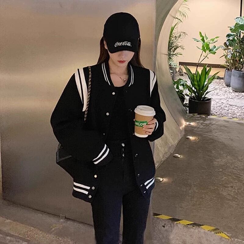 ジャケット アウター 上着 ベースボールジャケット 長袖 ドロップショルダー スタンドカラー ベースボールカラー ワイド ストレート ストリート ポケット 前開き ボタン アメカジ バイカラー ポリエステル かわいい 大人可愛い カジュアル おしゃれ こなれ感 ラフ メンズライク マニッシュ ボーイッシュ クール キュート 無地 春 秋 学生 学校 通学 デート お出かけ 女子会 休日 ショッピング カフェ 普段使い 着回し トレンド 定番 S M L XL 2XL 3XL ホワイト ブラック グレー