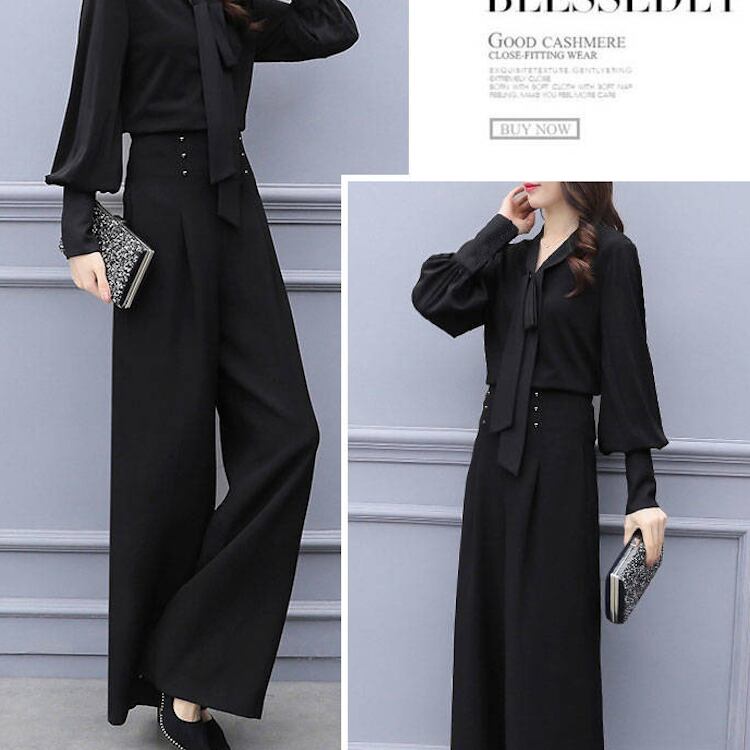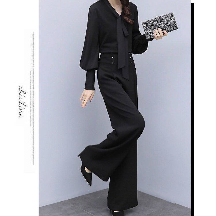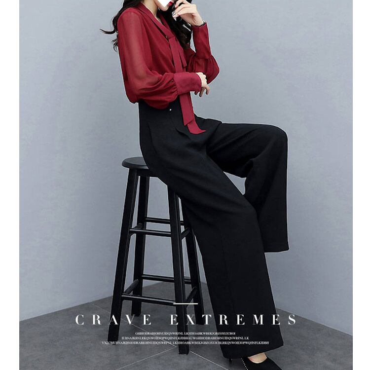 レディース トップス パンツ ボトムス ブラウス セットアップ 2点セット 上下セット フレア フルレングス 長袖 Vネック りぼんタイ ワイド フレア フェミニン ウエストマーク ハイウエスト コンサバ ボタン 大人可愛い きれいめ シンプル 上品 おしゃれ かっこいい こなれ感 エレガント 存在感 ラグジュアリー 無地 春 秋 発表会 OL デート お出かけ パーティー 旅行 休日 コンパ お呼ばれ オケージョン コーデ 脚長 M L XL 2XL 3XL 大きいサイズ 黒 ブラック ワインレッド