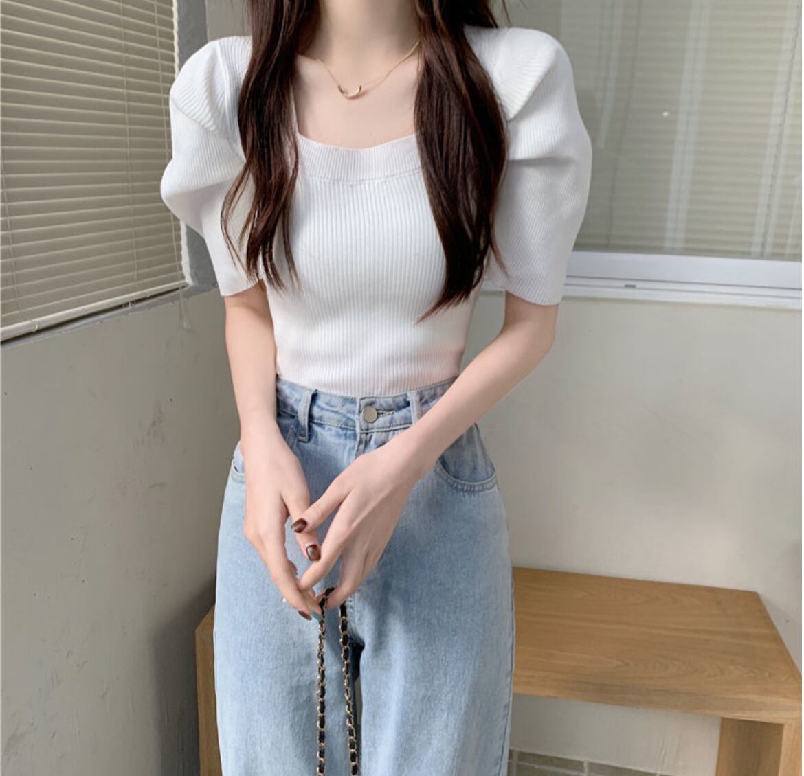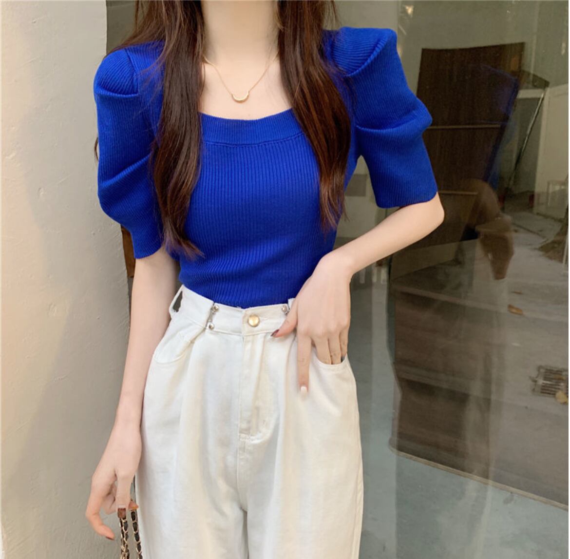トップス プルオーバー サマーセーター サマーニット レディース 半袖 パフスリーブ スクエアネック フェミニン フィット 伸縮性 リブニット 大人可愛い シンプル カジュアル おしゃれ こなれ感 ラフ ガーリー 存在感 清潔感 リラックス 軽やか 無地 春 夏 オフィス OL デート お出かけ イベント 女子会 休日 ショッピング カフェ 韓国 オルチャン コーデ 普段使い 着回し 清楚 トレンド スタイルアップ フリーサイズ ワンサイズ ロイヤルブルー イエロー ホワイト ピンク レッド パープル