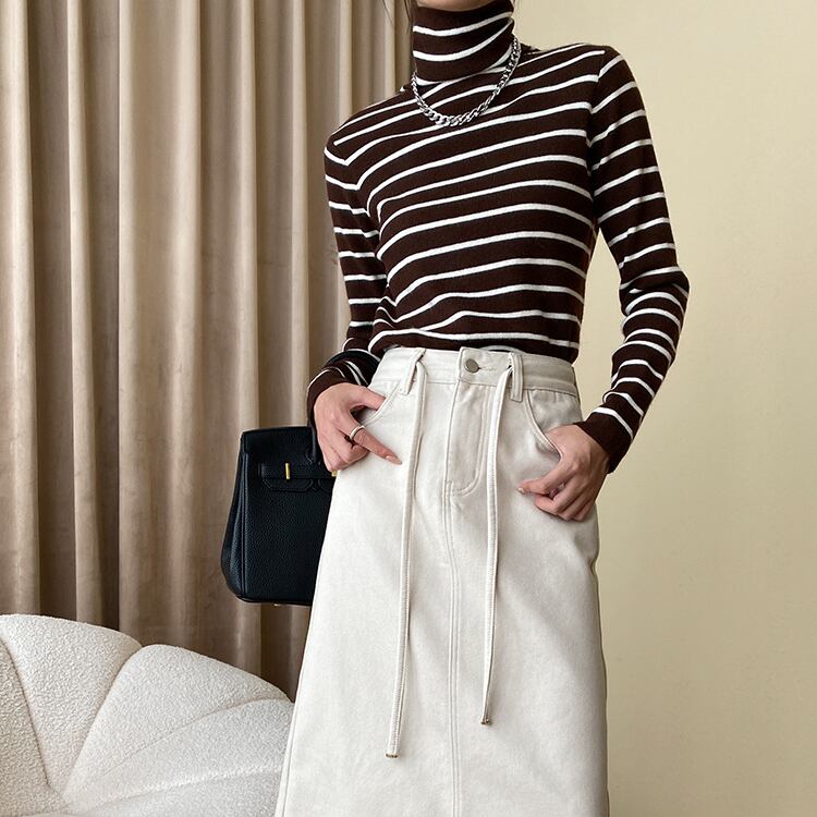 レディース トップス ニット 長袖 タートルネック タイト スリム 細身 フェミニン かわいい 大人可愛い シンプル カジュアル 上品 おしゃれ こなれ感 存在感 クラシカル 学生風 ベーシック ナチュラル ボーダー 秋 冬 ママ OL 学生 通学 デート お出かけ 旅行 公園 女子会 休日 ガーデン ショッピング コンサート カフェ ランチ 重ね着 コーデ 防寒 普段使い 着回し 定番 ワンサイズ 白 ホワイト 黒 ブラック 茶色 ブラウン 緑 グリーン ベーシックカラー 大人カラー 秋カラー