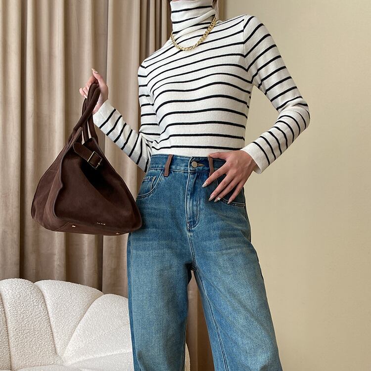すっきりとしたタイトシルエットが魅力のタートルネックニットは、首元まで優しく包み込み、防寒性と上品さを兼ね備えた秋冬の定番アイテムです。