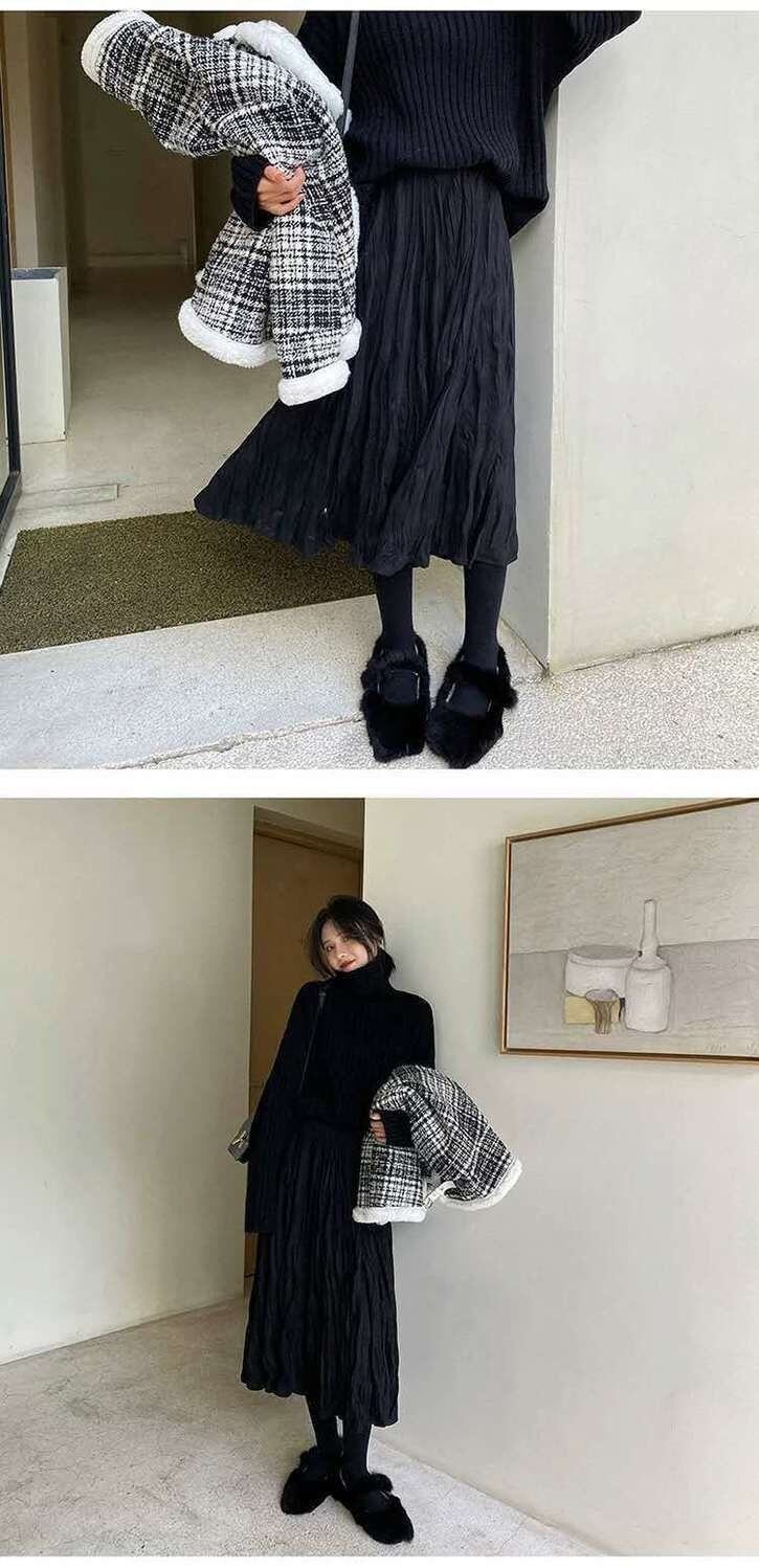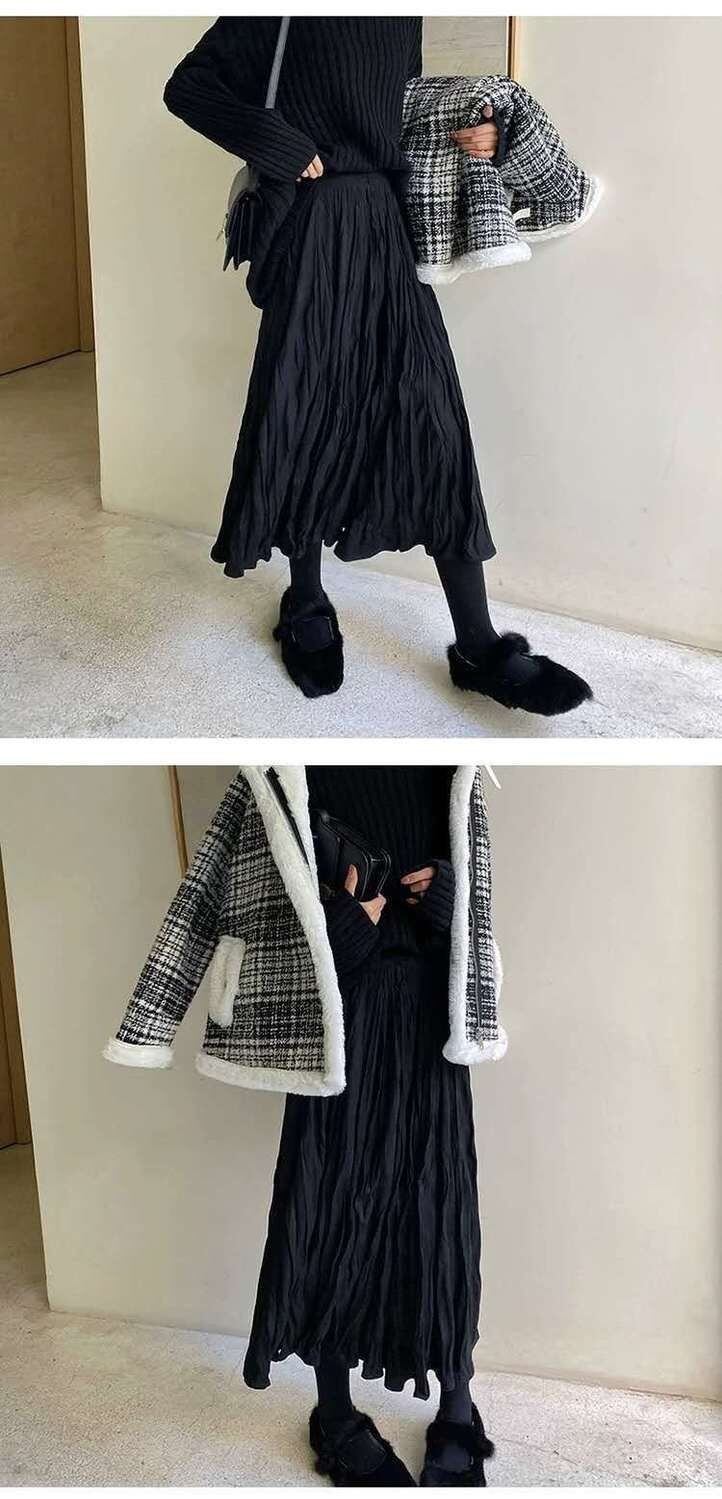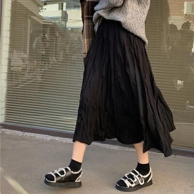 膝下丈とフレアシルエットが女性らしさを演出。シンプルでありながら、おしゃれなシルエットで、大人可愛いスタイルを楽しめます。