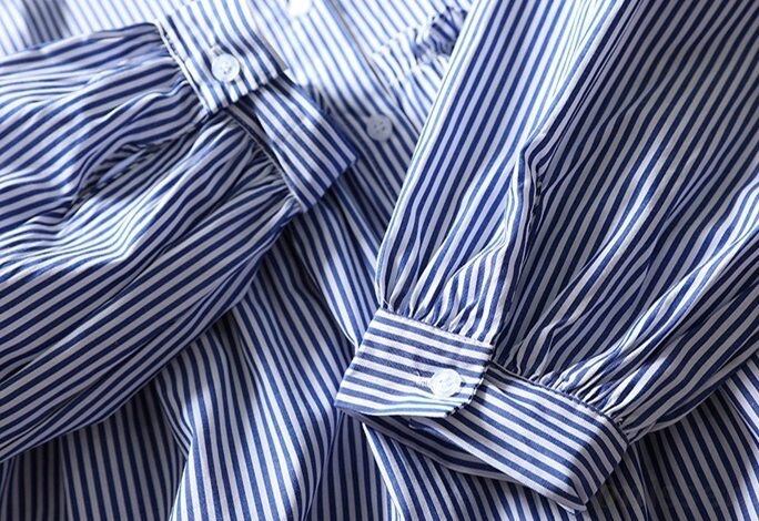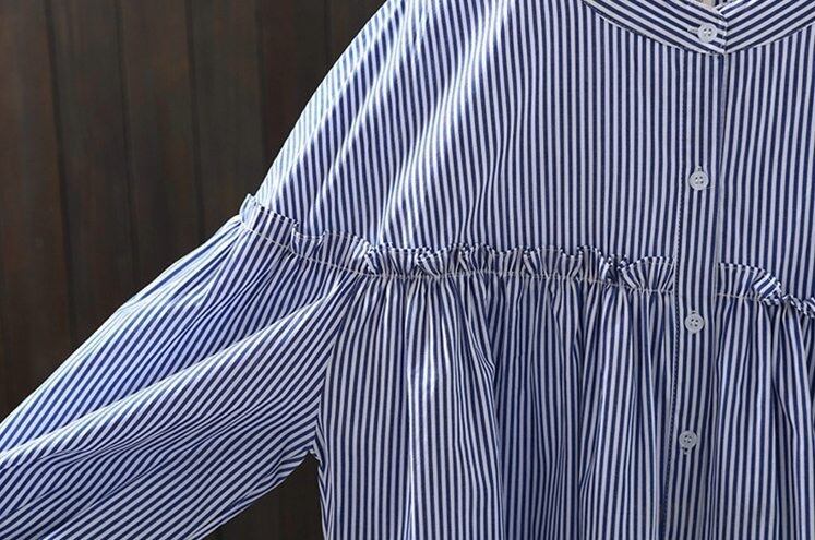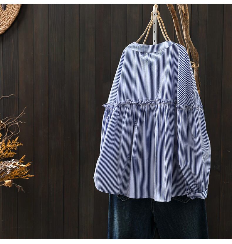 レディース トップス ブラウス 長袖 カフスリーブ ヘンリーネック フレア Aライン 裾ワイド フェミニン フリル ボタン コットン かわいい 大人可愛い きれいめ シンプル 上品 おしゃれ こなれ感 フォーマル 抜け感 都会的 ナチュラル 清潔感 涼しげ リラックス 軽やか 爽やか ストライプ 総柄 春 夏 秋 入学式 入園式 ロングシーズン 授業参観 会議 MTG ミーティング プレゼン ママ マタニティ オフィス ビジネス OL 通勤 デート お出かけ イベント リゾート 旅行 海 レストラン 女子