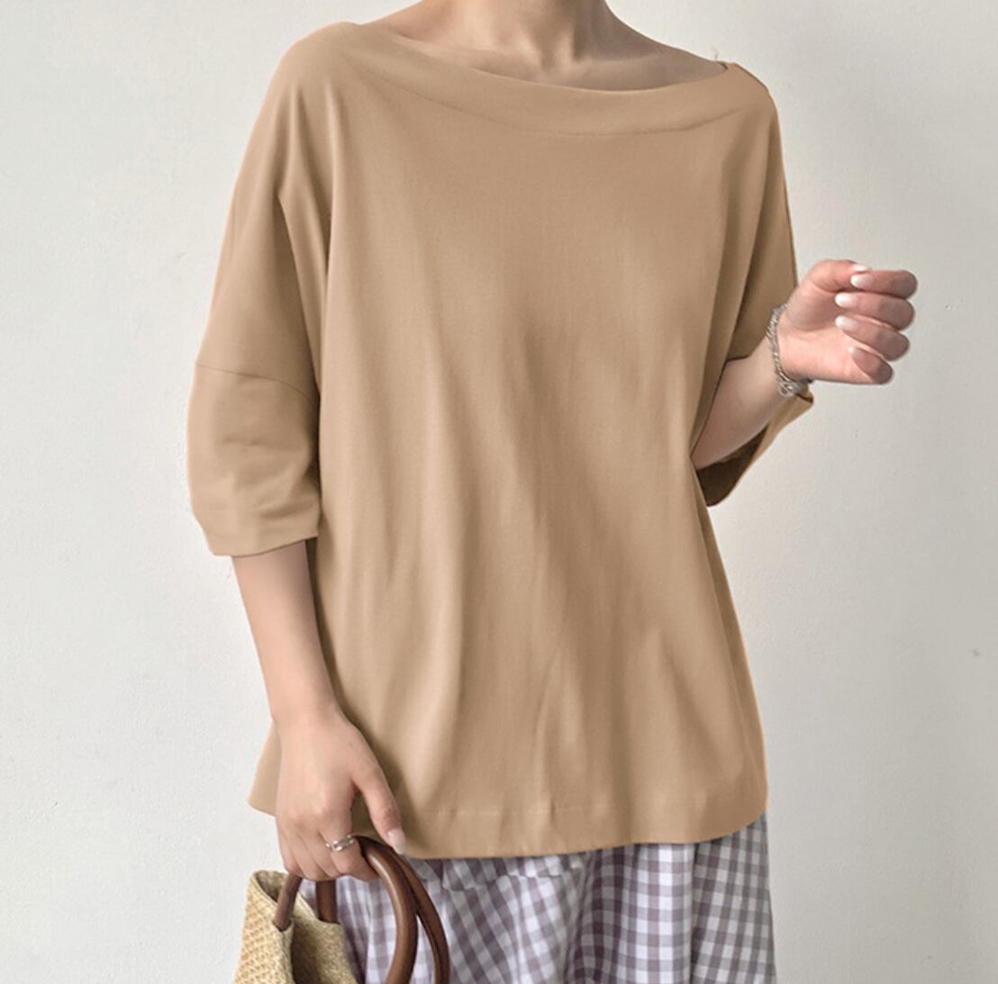 トップス シャツ カットソー プルオーバー レディース Tシャツ 半袖 ボートネック スラッシュネック 肩落ち フェミニン シンプル カジュアル 上品 おしゃれ こなれ感 ラフ スポーティー ルーズ クール 抜け感 アクティブ ナチュラル リラックス 無地 春 夏 お出かけ 休日 ショッピング カフェ ランチ 韓国 オルチャン コーデ 楽ちん 体型カバー 普段使い 着回し 清楚 トレンド スタイルアップ M L XL ゆったり オーバーサイズ キャメル ホワイト ブラック ライトブルー モスグリーン