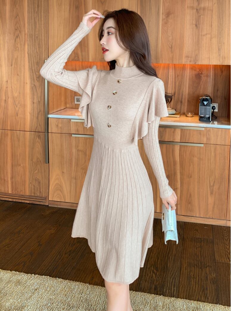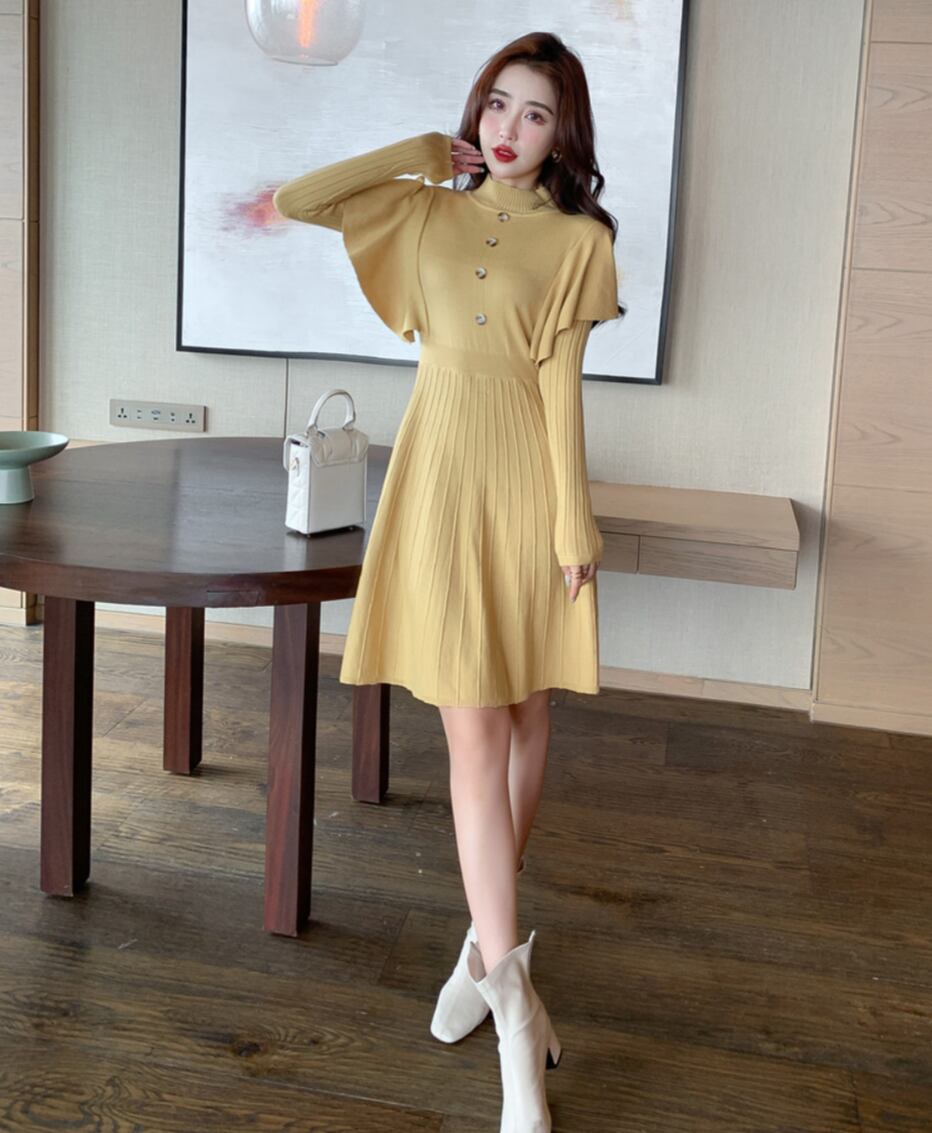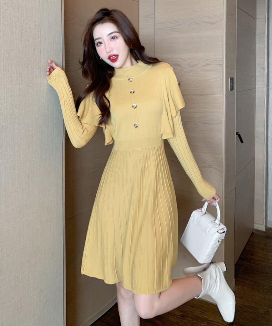 レディース ワンピース レディース フレアスカート ミニ 膝上 長袖 ハイネック 襟なし セミフレア タイト Aライン 切り替え フリル ウエストマーク ハイウエスト きれいめ シンプル 上品 おしゃれ 主役級 存在感 ナチュラル 清潔感 無地 秋 冬 デート お出かけ パーティー 旅行 レストラン 女子会 高原 ホテル ガーデン ショッピング 合コン コンパ カフェ ランチ お呼ばれ お揃い 双子 韓国 コーデ 楽ちん 暖かい 普段使い 着回し フリーサイズ ワンサイズ ブラック イエロー ベージュ