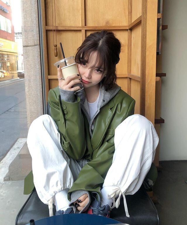 長袖で襟付きのワイドストレートシルエットが、リラックスした雰囲気を演出します。