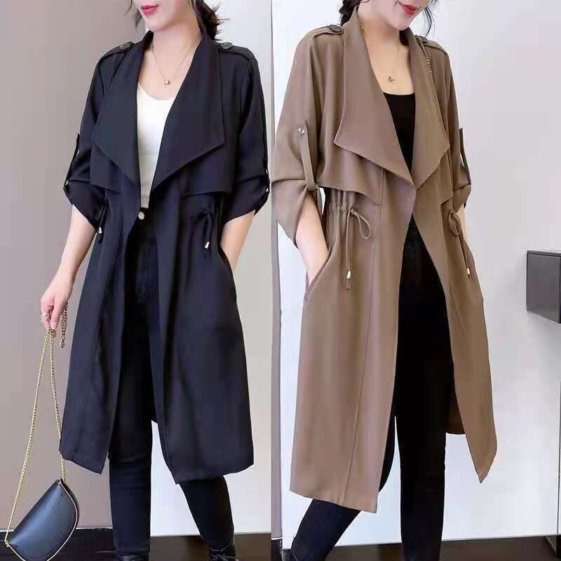 アウター コート トレンチコート ミディアム丈 きれいめ シック 英国スタイル ウインドブレーカー ストリートダブル エレガント ミディアム丈 ジャケット Aライン シンプル 上品 おしゃれ こなれ感 クール 存在感 都会的 ナチュラル 春 秋 ママ デート お出かけ レストラン 休日 ショッピング 体型カバー M L XL ブラック カーキ 定番カラー 大人カラー