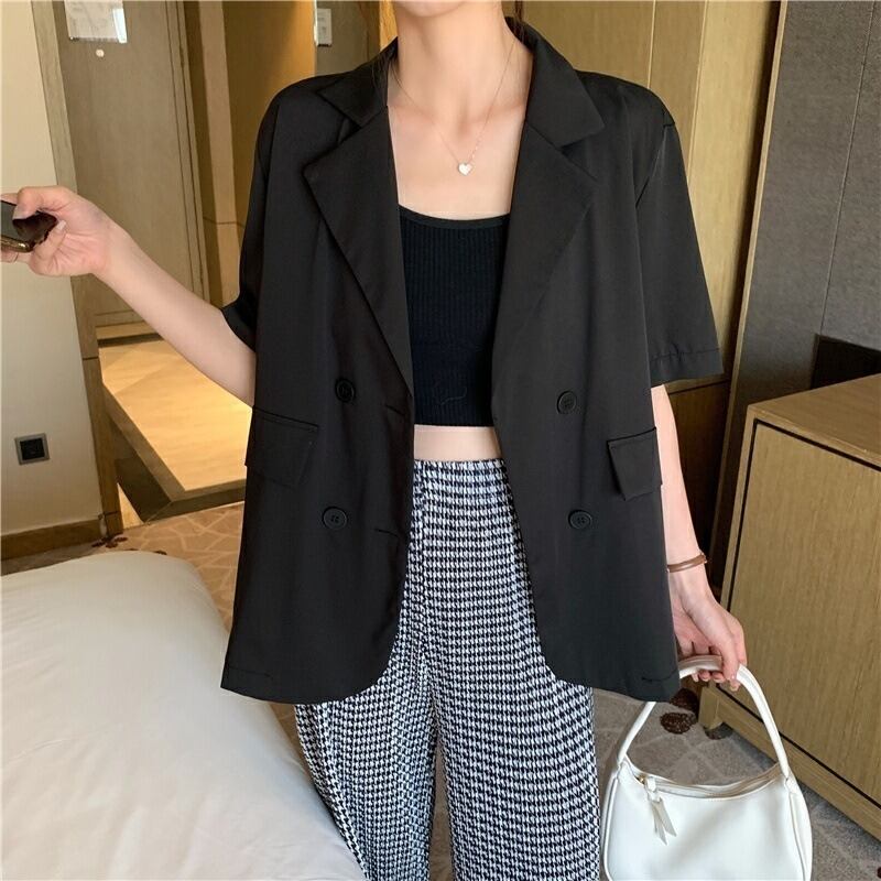 ジャケット スーツジャケット アウター ミディアム丈 半袖 襟付き スリム 前開き ボタン 大人可愛い きれいめ シンプル カジュアル 大人 おしゃれ お洒落 大人女子 ラフ スポーティー 無地 春 夏 秋 ロングシーズン 10代 20代 30代 レディース 通勤 通学 お出かけ 運動 アウトドア 高原 普段使い 楽ちん S M L XL 2XL ゆったり ゆる ブラック アプリコット ホワイト ブルー バイオレット 大人カラー 定番カラー