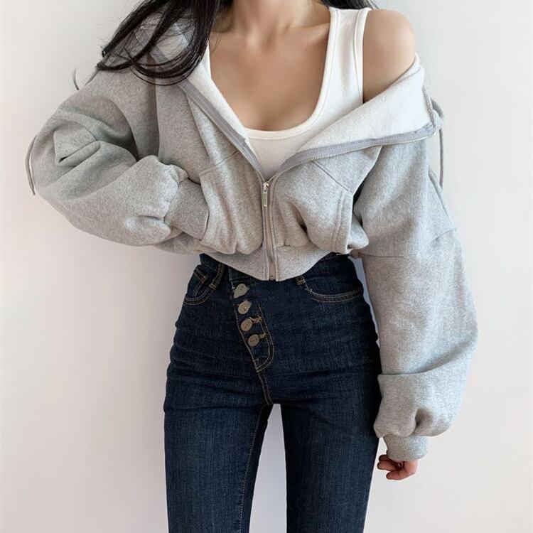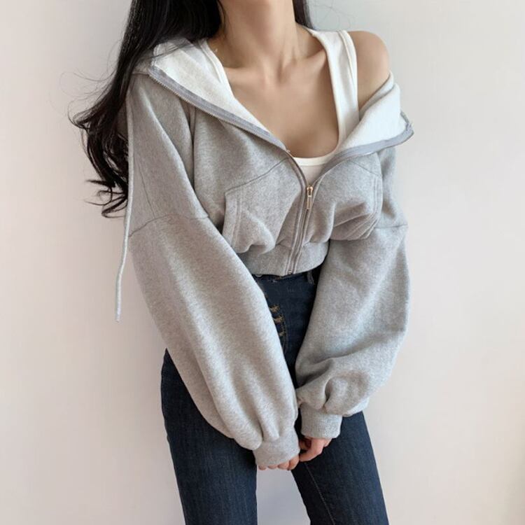 レディース トップス パーカー 部屋着 上着 クロップド丈 長袖 ボリューム袖 ドロップショルダー 萌袖 フード ワイド フェミニン ストリート ファスナー ポケット ハイウエスト かわいい シンプル カジュアル おしゃれ かっこいい こなれ感 ラフ マニッシュ スポーティー 存在感 抜け感 アメリカン アクティブ ワイルド リラックス セクシー 無地 春 秋 旅行 女子会 休日 ショッピング コンサート ライブ カフェ ランチ コーデ 脚長 普段使い S M L 黒 ブラック グレー パープルレッド