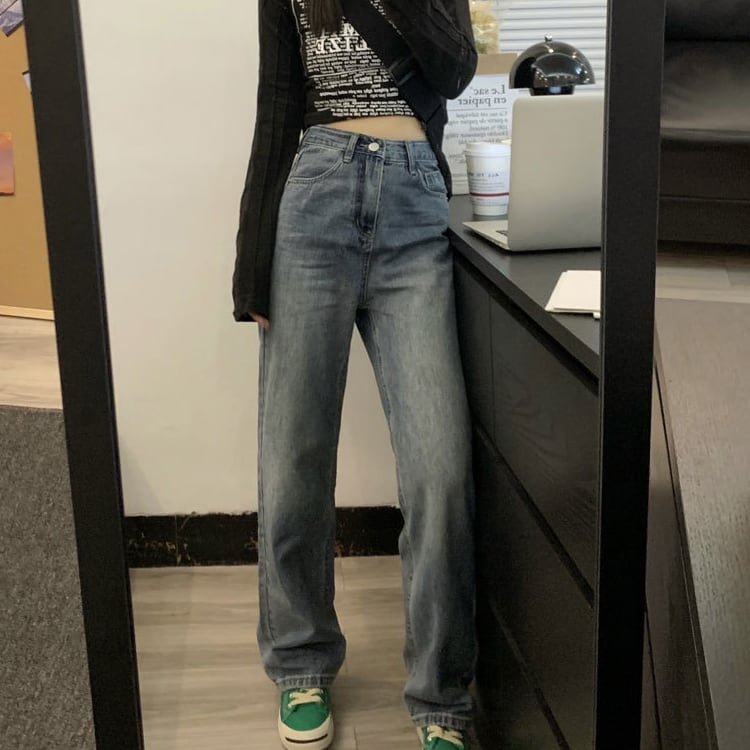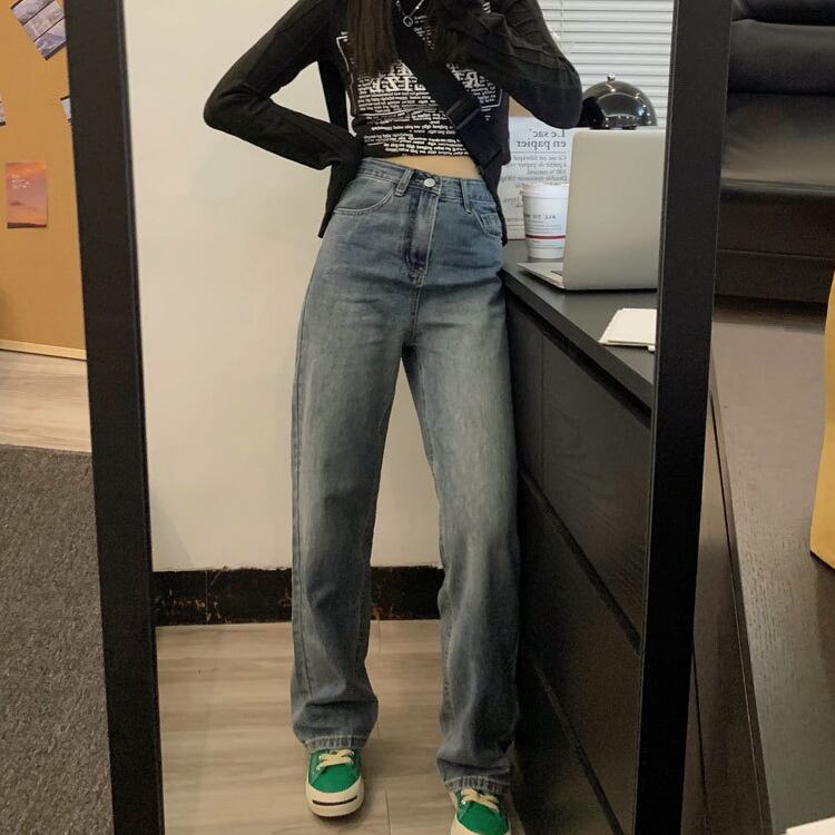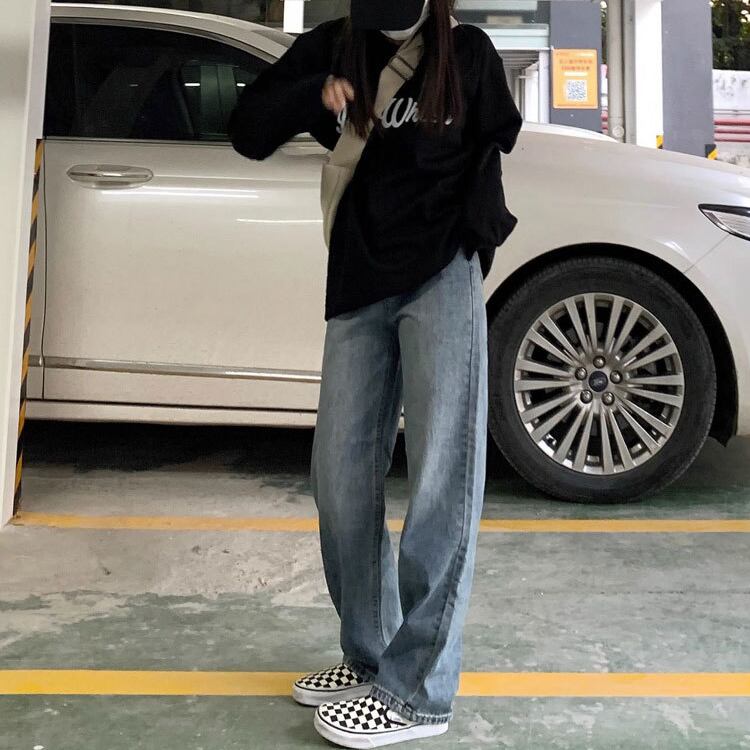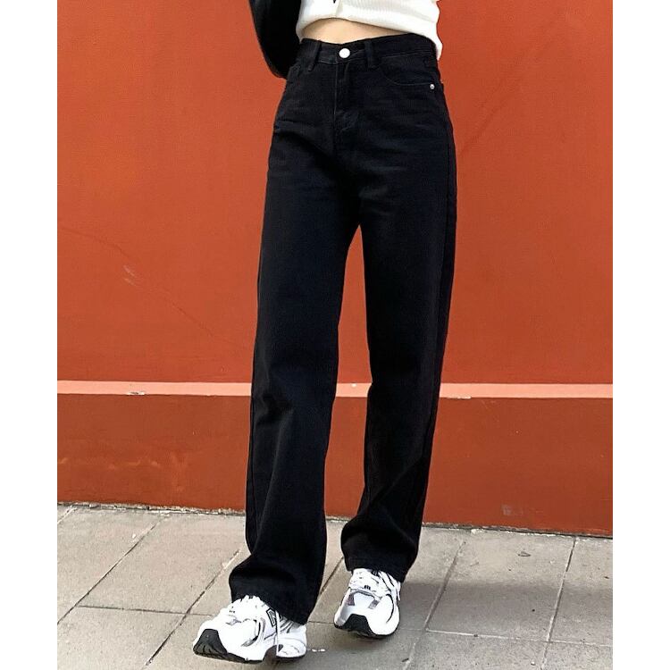 レディースのデニムロングパンツは、ワイドストレートのシルエットで脚のラインをすっきり見せながらも、程よいラフさと存在感を演出する万能アイテムです。