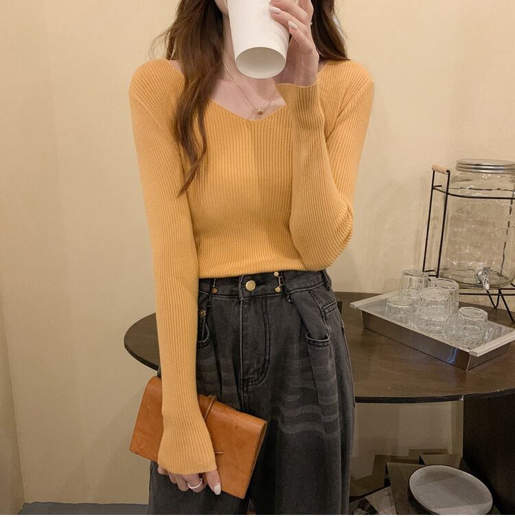 レディース トップス カットソー ニット 長袖 Vネック 襟なし ノーカラー タイト スリム 細身 フェミニン リブニット かわいい 大人可愛い シンプル カジュアル 上品 おしゃれ こなれ感 キュート ベーシック ナチュラル 軽やか 無地 春 秋 ママ OL 学生 デート お出かけ 旅行 公園 女子会 休日 ショッピング 合コン コンパ カフェ ランチ コーデ 楽ちん 普段使い 着回し ワンサイズ 白 ホワイト 黒 ブラック ブラウン イエロー ベージュ カーキ ブルー グリーン 大人カラー 秋カラー