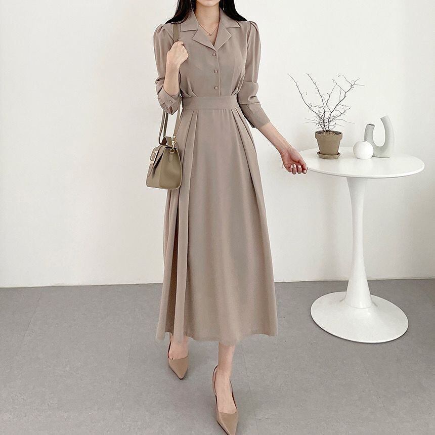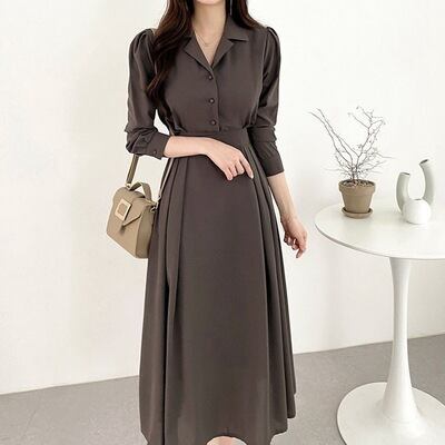 レディース ワンピース 膝下 ミモレ Vネック 襟付き フレア かわいい 大人可愛い きれいめ シンプル 上品 おしゃれ ガーリー エレガント 主役級 とろみ感 都会的 クラシカル カレッジ風 学生風 プレッピー ロマンティック 清潔感 涼しげ 軽やか 通気性 爽やか 無地 春 秋 ロングシーズン 授業参観 会議 MTG ミーティング プレゼン オフィス ビジネス OL 通勤 デート お出かけ イベント リゾート 旅行 レストラン ビーチ 女子会 休日 バカンス ホテル ガーデン ショッピング 発表会 コ