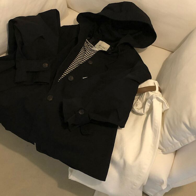 ブラックのシンプルなデザインながらもトレンド感たっぷりのオーバーサイズシルエットが魅力的なアウターです。
