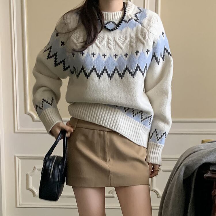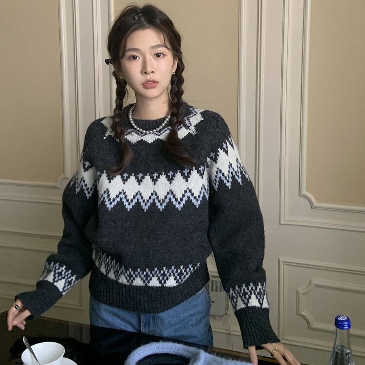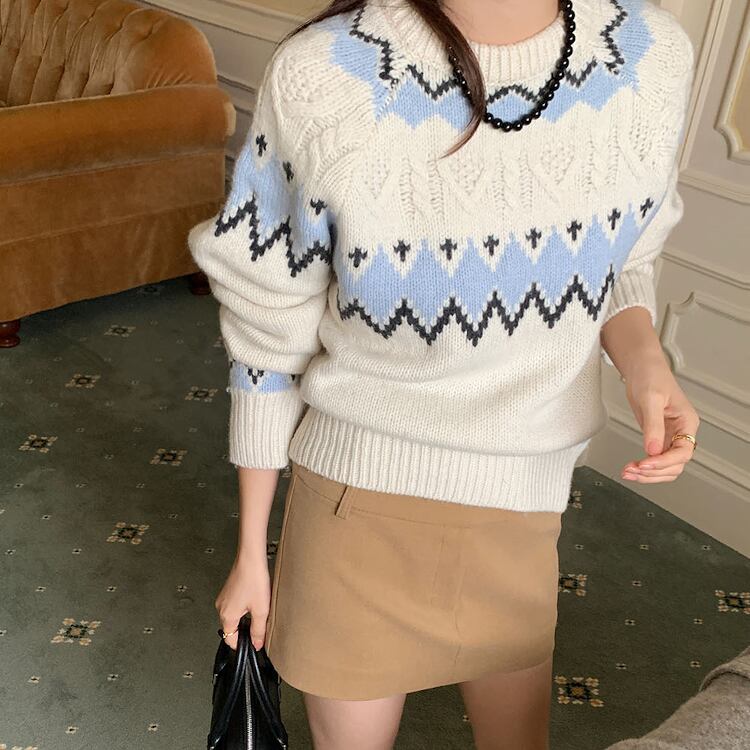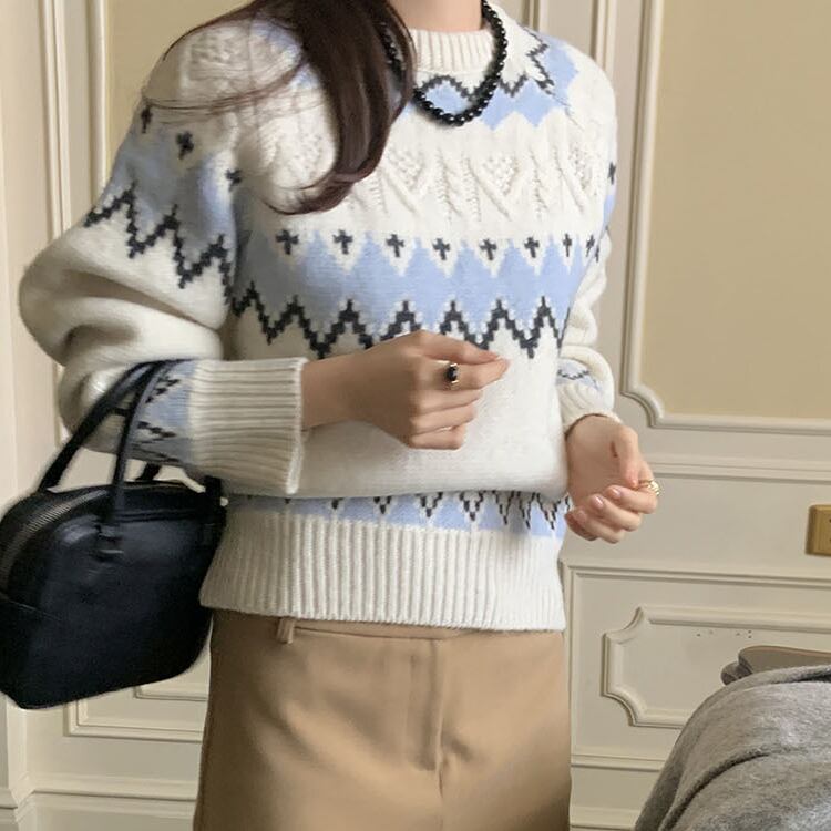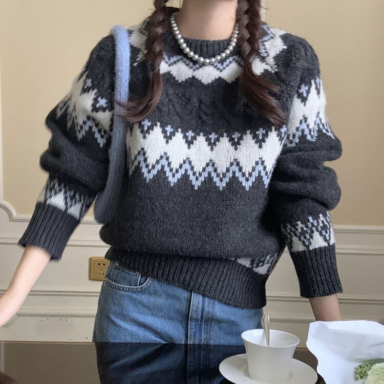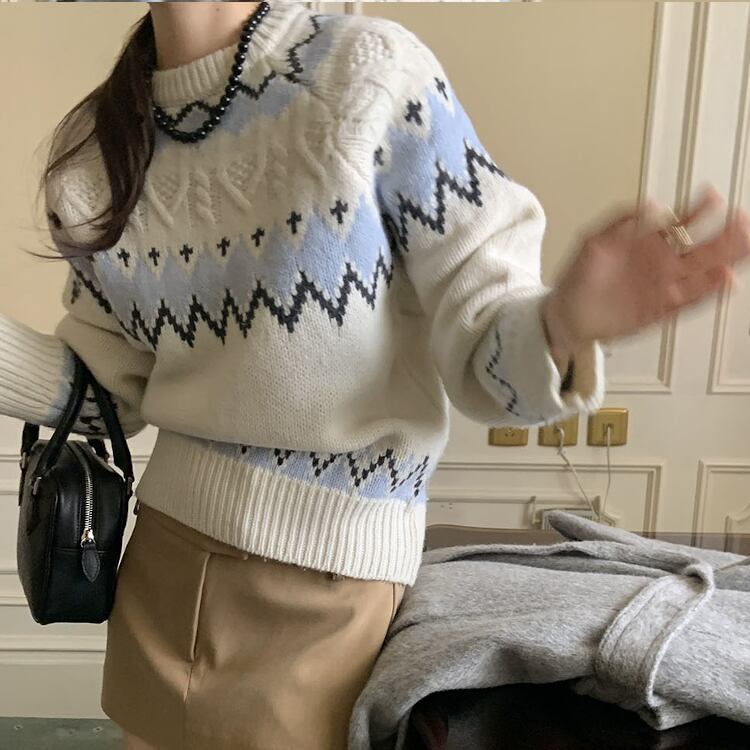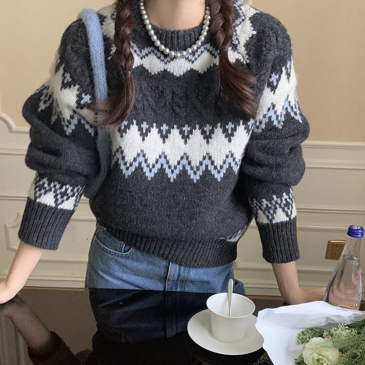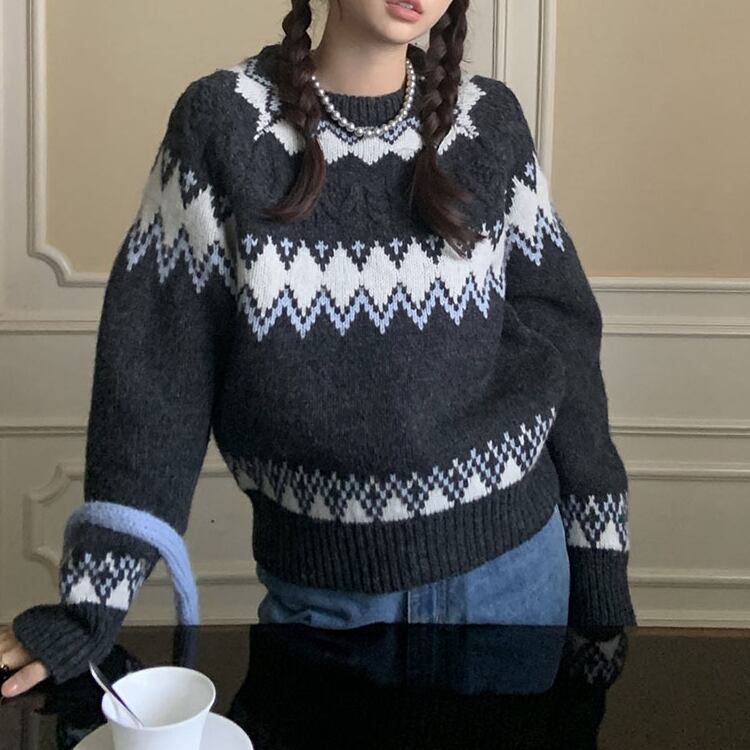 レディース トップス ニット セーター プルオーバー 長袖 ラウンドネック フェミニン ストリート ふっくら ケーブルニット アメカジ かわいい カジュアル おしゃれ こなれ感 ラフ 存在感 キュート ロマンティック リラックス 幾何学 秋 冬 クリスマス バレンタイン 学生 デート お出かけ 旅行 公園 女子会 休日 ショッピング カフェ ランチ 重ね着 韓国 オルチャン コーデ 普段使い 着回し レイヤード 清楚 ワンサイズ 白 ホワイト ブルー ベーシックカラー 大人カラー チャコールグレー