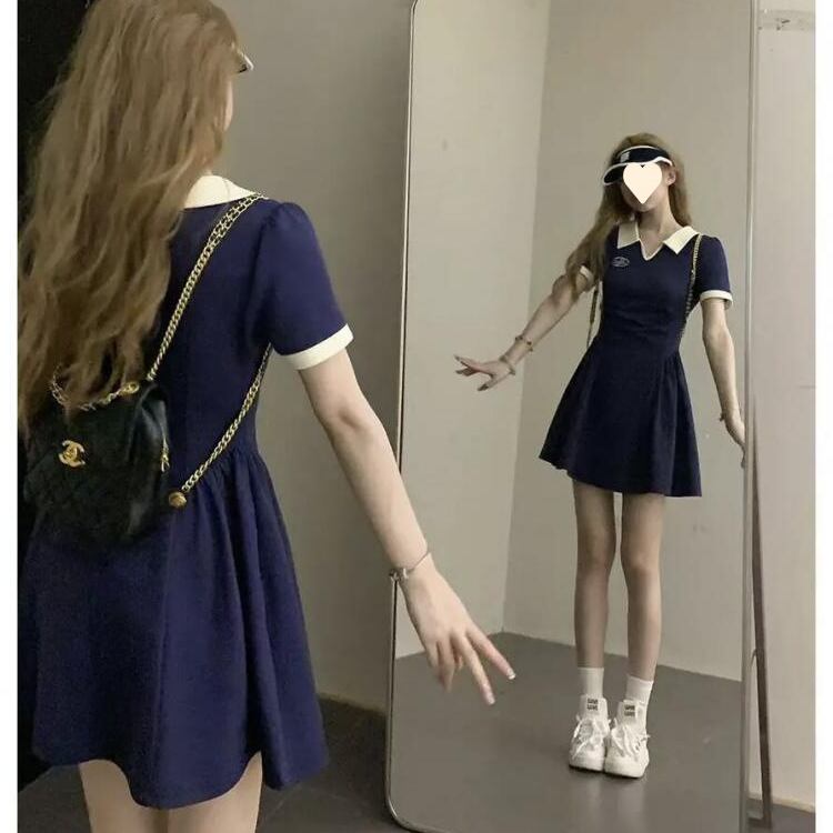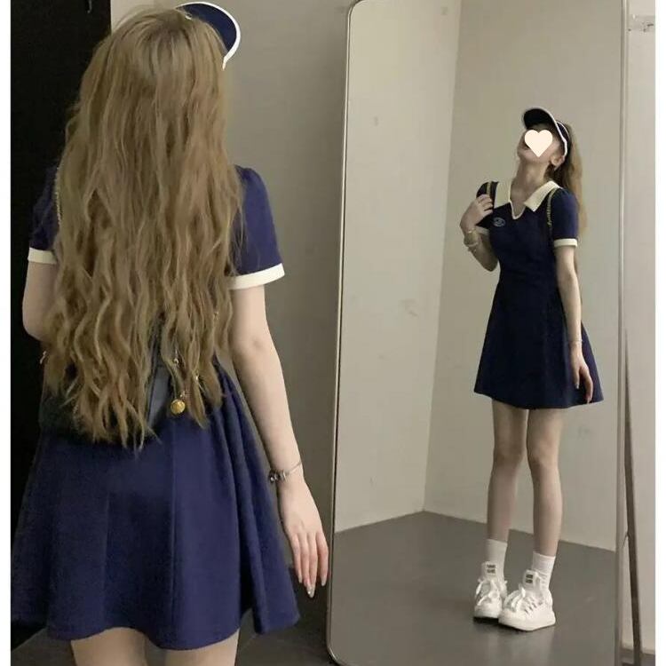 レディース ワンピース ミニ 半袖 スキッパー フレア Aライン 切り替え フェミニン ハイウエスト バイカラー 配色 かわいい シンプル カジュアル おしゃれ かっこいい こなれ感 ラフ スポーティー ガーリー 存在感 学生風 ベーシック 涼しげ リラックス 軽やか 爽やか ロゴ 夏 学生 デート お出かけ 旅行 公園 女子会 休日 ショッピング コンサート ライブ カフェ ランチ コーデ 脚長 普段使い 着回し モテ M L XL 2XL 3XL 4XL 5XL 大きいサイズ ビッグ ブルー