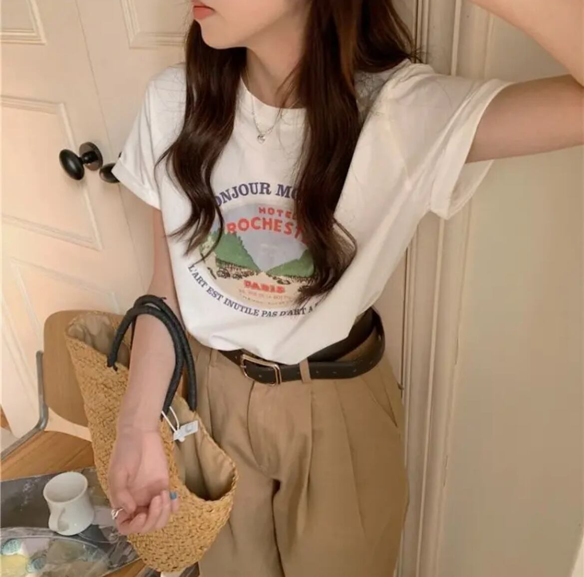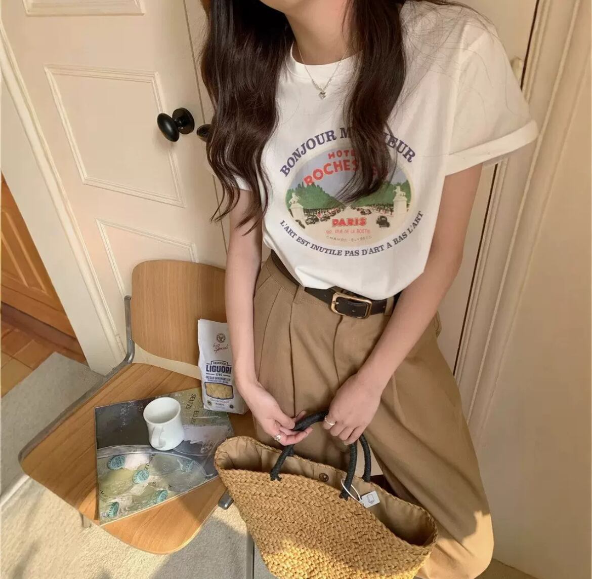 トップス シャツ プルオーバー レディース Tシャツ 半袖 クルーネック フェミニン スタイルアップ 大人可愛い シンプル カジュアル おしゃれ こなれ感 ラフ 個性的 フォーマル 抜け感 ナチュラル リラックス 軽やか 爽やか プリント グラフィック 春 夏 オフィス OL 通勤 デート お出かけ 女子会 休日 ショッピング カフェ 韓国 オルチャン コーデ 楽ちん 体型カバー 普段使い 着回し モテ トレンド インスタ映え スタイルアップ S M L XL 2XL 3XL ゆったり PARIS パリ