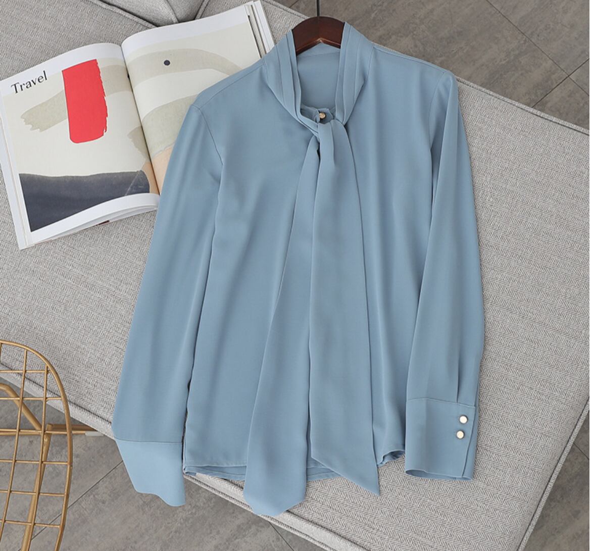 洗練されたフェミニンなデザインが魅力の、長袖ボウタイシャツの登場です!