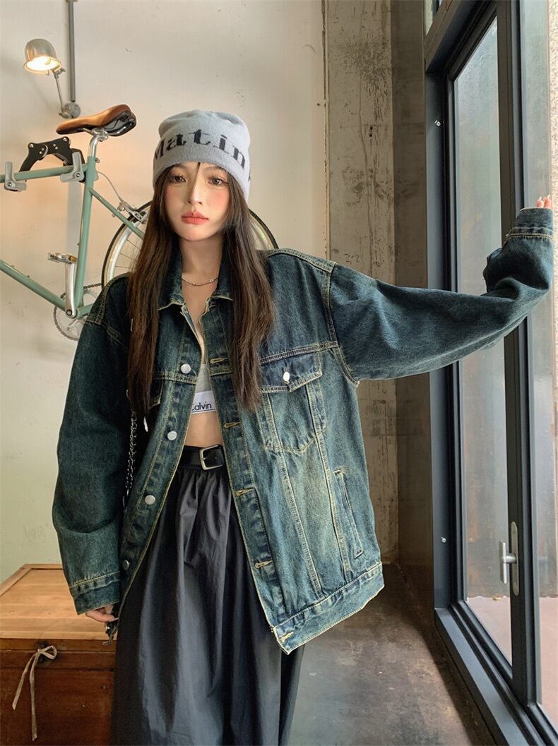 ジャケット レディース デニムジャケット Gジャン ショート 長袖 萌袖 襟付き ワイド オーバーサイズ フェミニン ポケット 前開き ボタン デニム ブルーデニム 大人可愛い カジュアル おしゃれ こなれ感 ラフ 個性的 存在感 キュート ベーシック アメリカン 無地 タッセル ビーズ 花柄 数字 春 秋 学生 学校 通学 デート お出かけ 女子会 休日 ショッピング コーデ 体型カバー 普段使い 着回し S M L XL ブルー 定番カラー