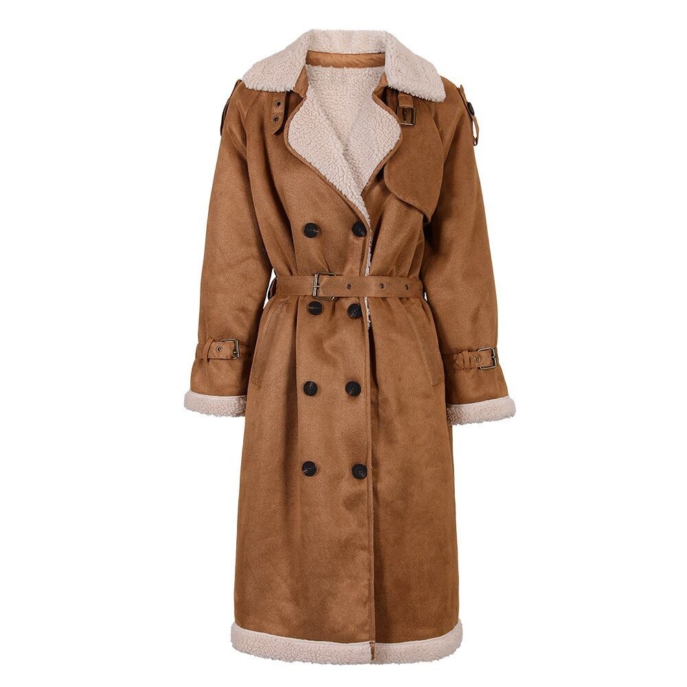 アウター コート トレンチコート ロングコート きれいめ もこもこ 暖かい ビッグサイズ シック 英国スタイル ストリートダブル エレガント ロング丈 ジャケット Aライン シンプル 上品 おしゃれ こなれ感 クール 存在感 都会的 ナチュラル 秋 冬 ママ デート お出かけ レストラン 休日 ショッピング 体型カバー S M L ライトブラウン 定番カラー 大人カラー