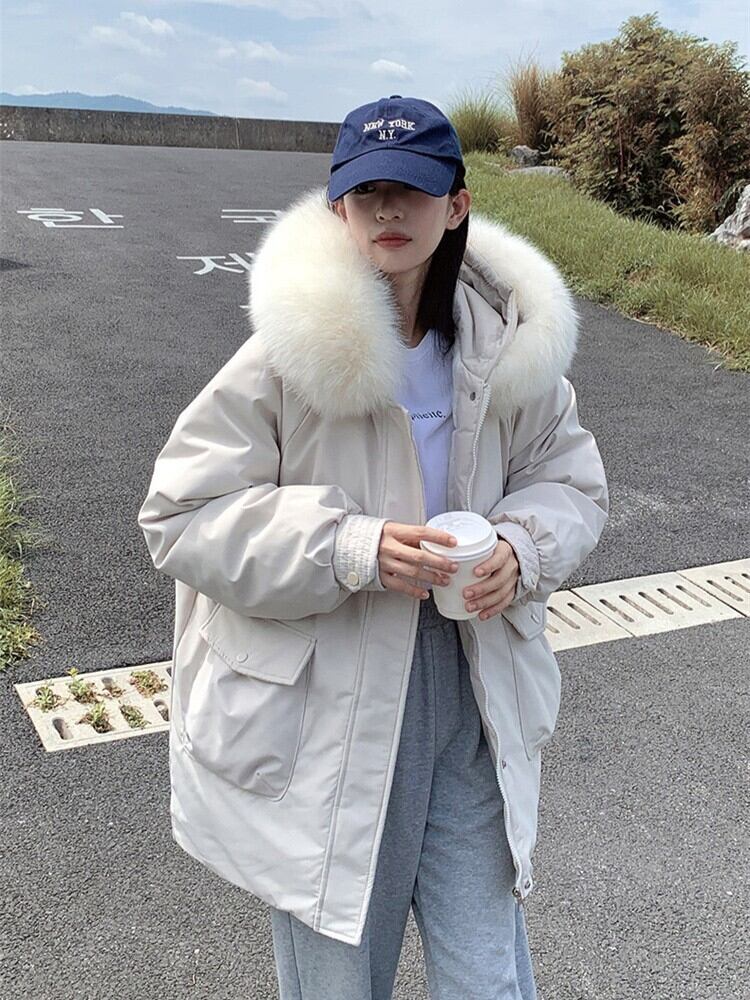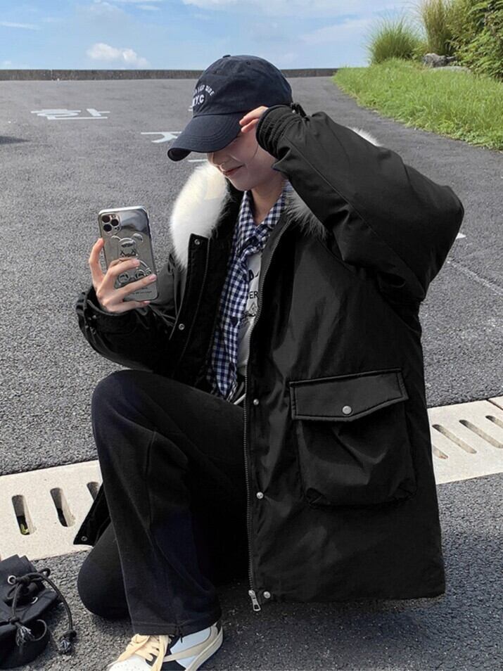 ジャケット コート アウター 上着 レディース モッズコート ミディアム 長袖 襟付き フード ワイド ストレート ファスナー ポケット 前開き ファー フェイクファー 厚手 ポリエステル かわいい 大人可愛い カジュアル おしゃれ かっこいい こなれ感 ルーズ 存在感 ベーシック 無地 秋 冬 学生 学校 通学 デート お出かけ 公園 女子会 休日 ショッピング 重ね着 韓国 オルチャン コーデ 体型カバー 普段使い 着回し 定番 M L XL 2XL クリーム ブラック オフホワイト オレンジ ブルー