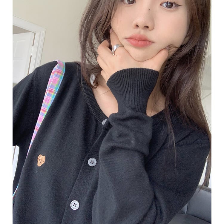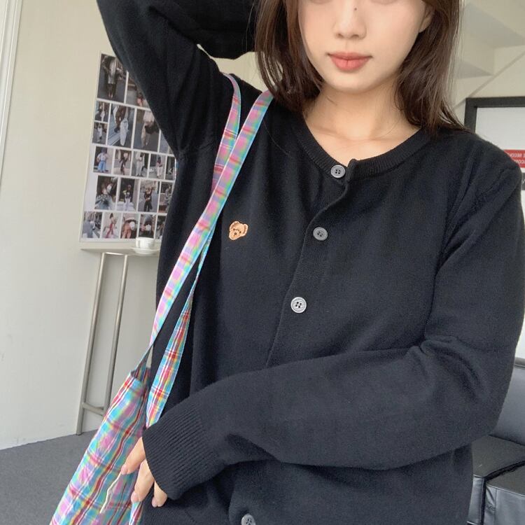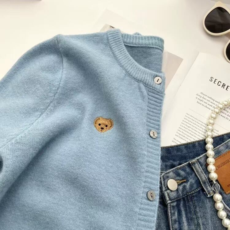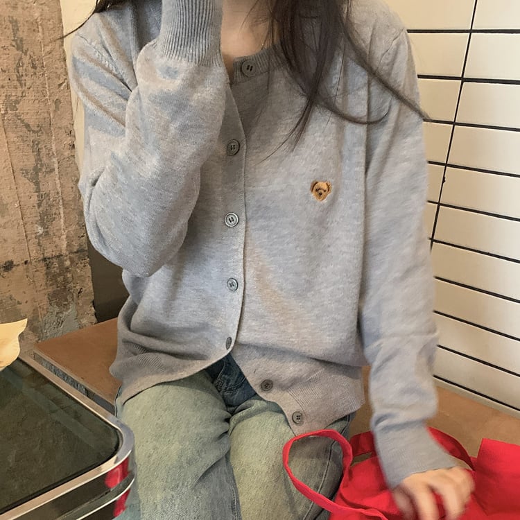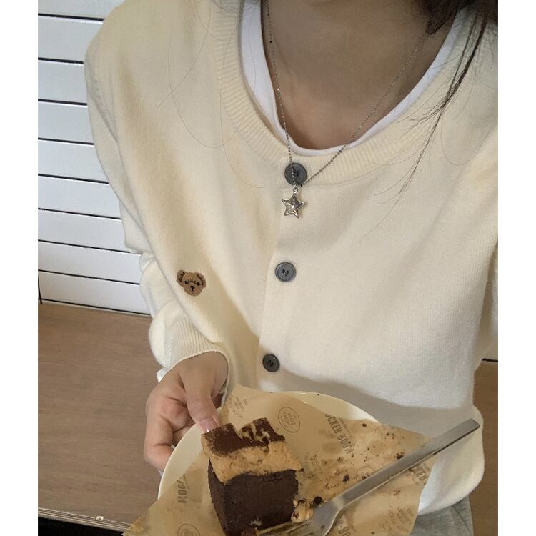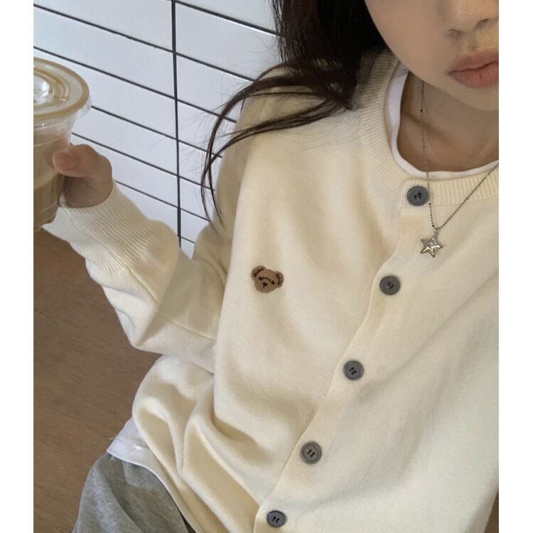 レディース トップス ニット カーディガン 長袖 ラウンドネック 襟なし ノーカラー フェミニン ストリート 刺繍 前開き ボタン かわいい 大人可愛い シンプル カジュアル 上品 おしゃれ こなれ感 存在感 抜け感 学生風 ベーシック 無地 くま柄 ワンポイント 春 秋 ママ OL 学生 デート お出かけ 旅行 公園 女子会 休日 ショッピング カフェ ランチ お揃い コーデ 普段使い 着回し 定番 ワンサイズ 白 ホワイト 黒 ブラック グレー ベージュ ピンク くすみ 大人カラー オリーブ