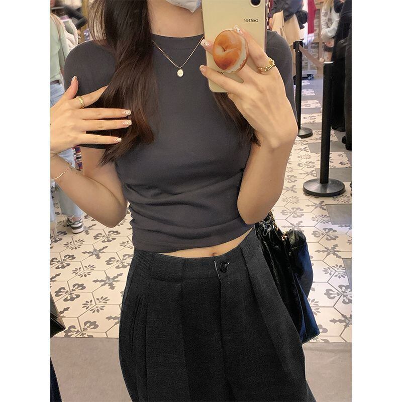 レディース トップス Tシャツ クロップド丈 半袖 ラウンドネック 襟なし ノーカラー スリム 細身 ストレート フェミニン ストリート かわいい 大人可愛い シンプル カジュアル 上品 おしゃれ かっこいい こなれ感 ラフ 存在感 ベーシック ナチュラル 清潔感 涼しげ 軽やか 爽やか 無地 夏 OL 学生 デート お出かけ 旅行 公園 女子会 休日 ライブ 合コン コンパ カフェ フェス ランチ コーデ 普段使い 着回し モテ 定番 S M L XL 白 ホワイト グレー 水色 ブルー 大人カラー