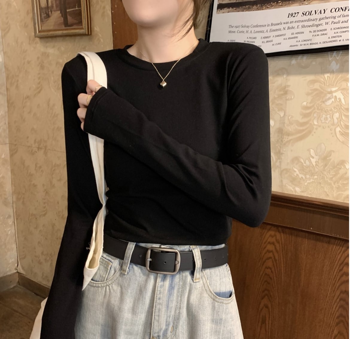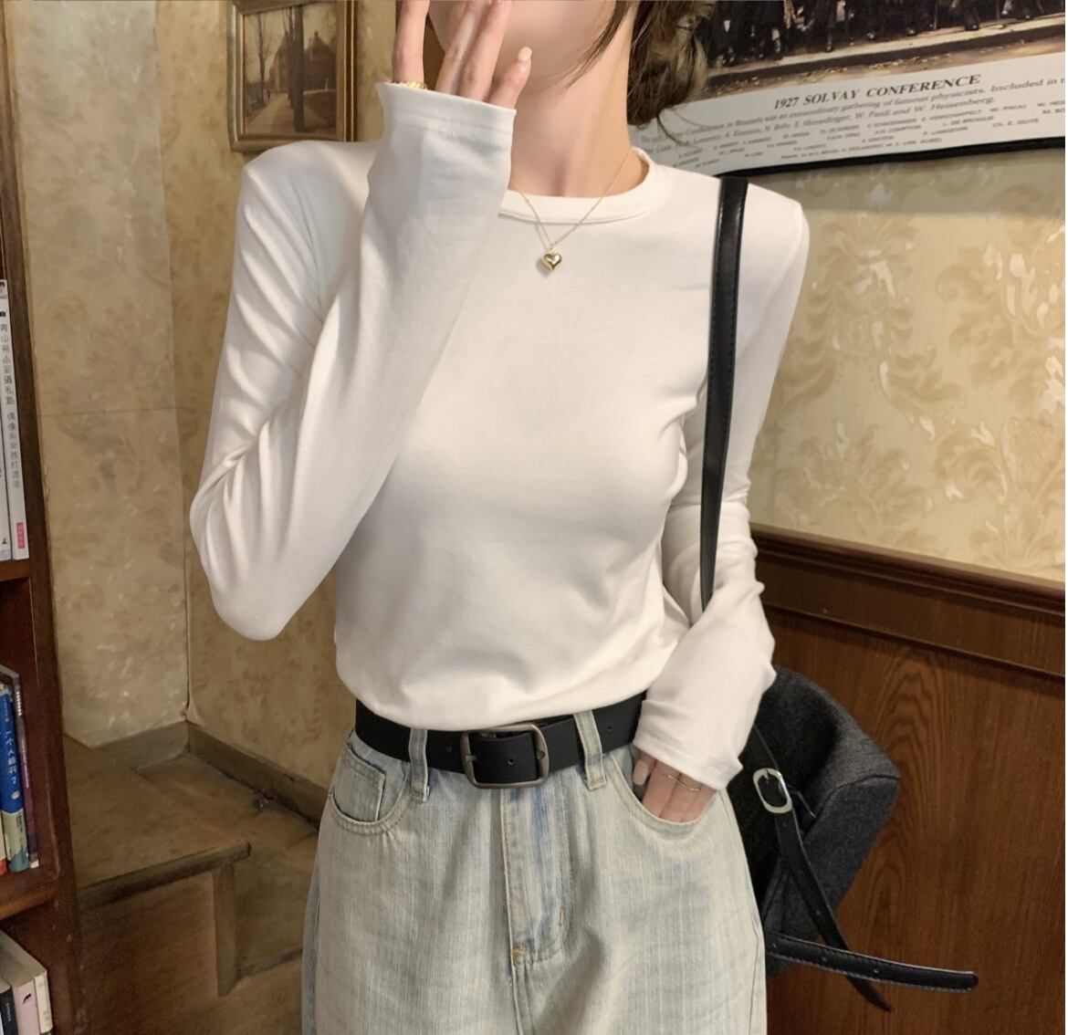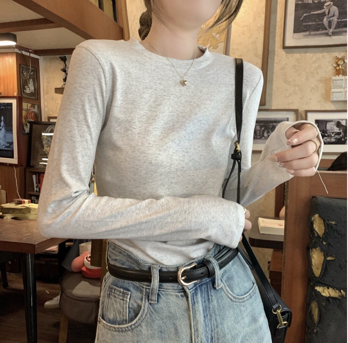 クルーネックデザインとフィット感が、女性らしさを引き立てます。