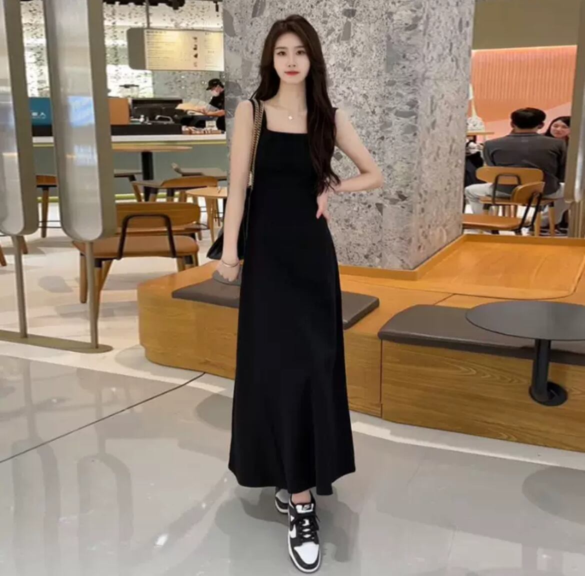 ワンピース ドレス レディース ロング マキシ 袖なし ノースリーブ スクエアネック フレア Aライン ドレープ フェミニン 大人可愛い シンプル おしゃれ こなれ感 ラフ モード系 エレガント 存在感 抜け感 アクティブ ナチュラル 無地 夏 イベント リゾート 旅行 女子会 休日 ショッピング ライブ フェス ランチ 韓国 オルチャン コーデ 楽ちん 普段使い 着回し レイヤード モテ トレンド スタイルアップ S M L XL オフホワイト ブラック ネイビー ピンク ライトグリーン ライトグレー