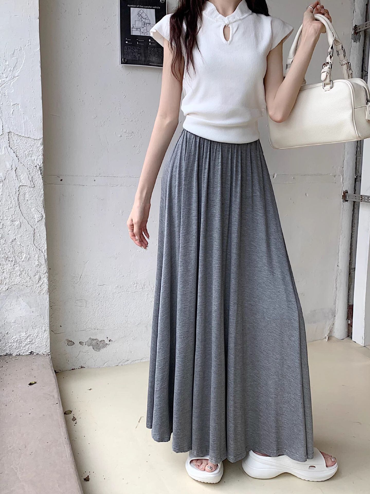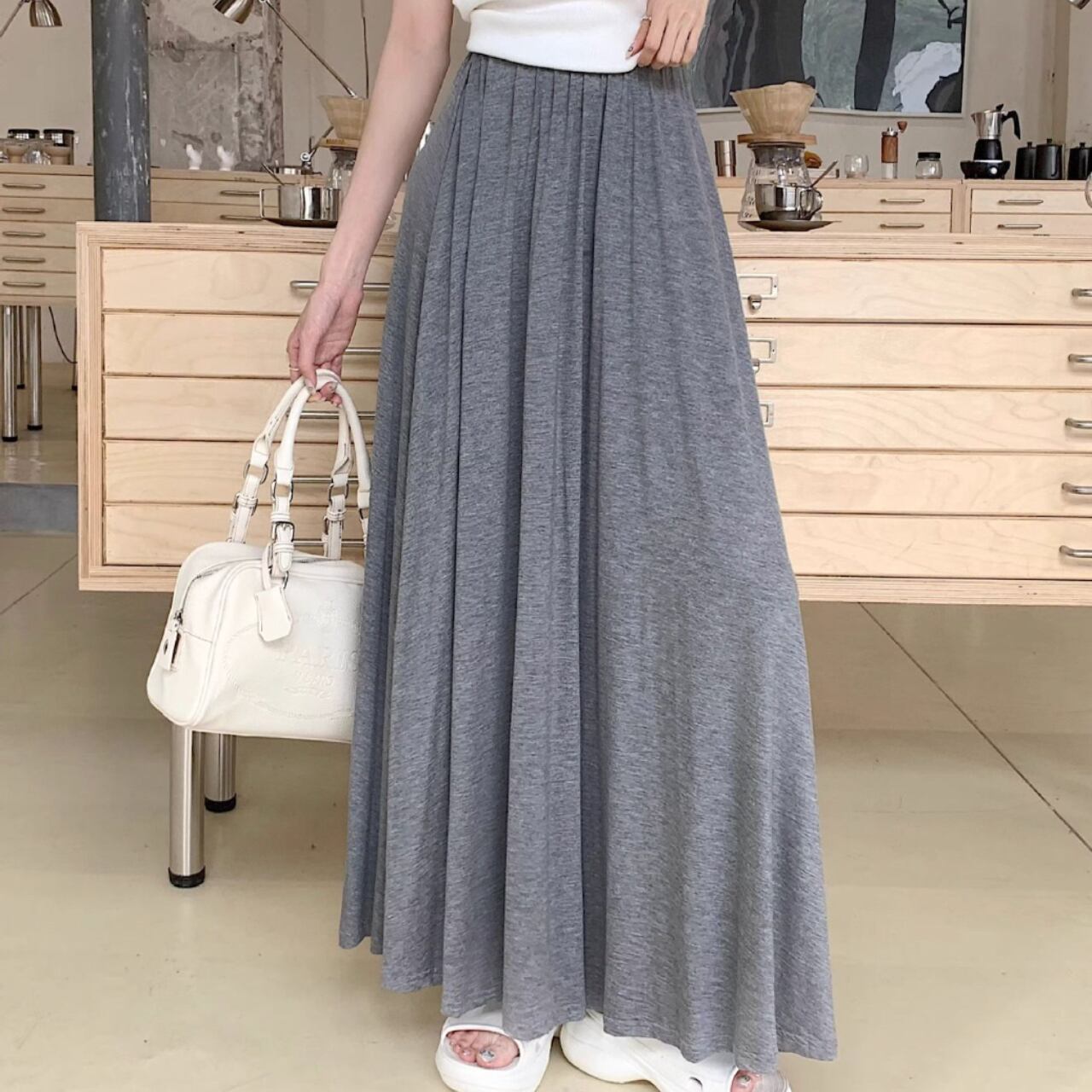 歩くたびに優雅に揺れ、女性らしい雰囲気を演出。