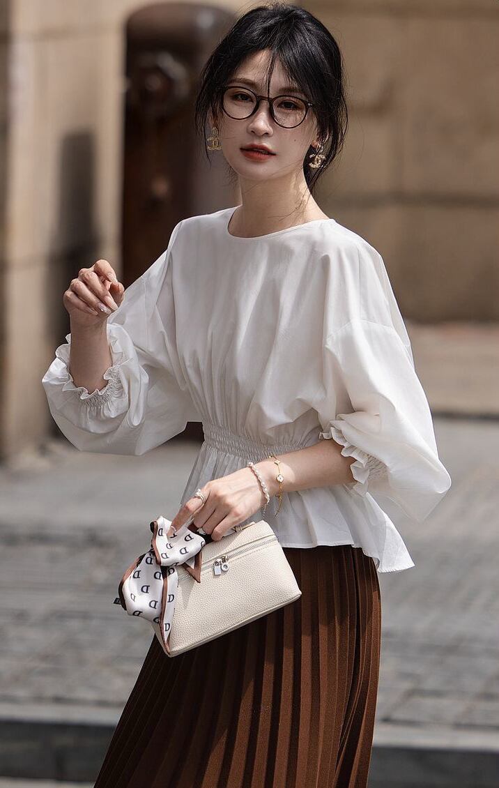 ボリュームのある袖は、腕を華奢に見せる効果も。