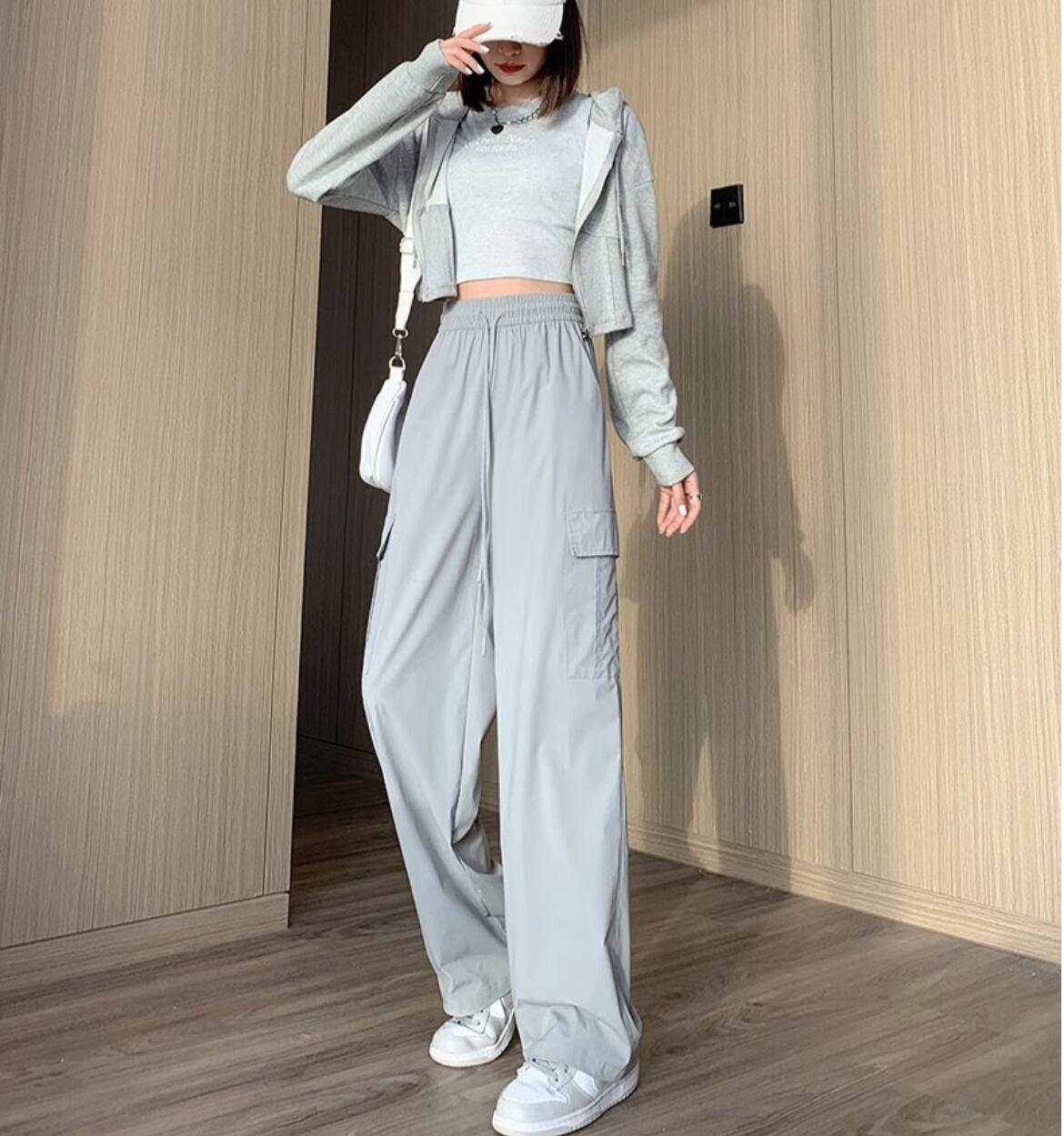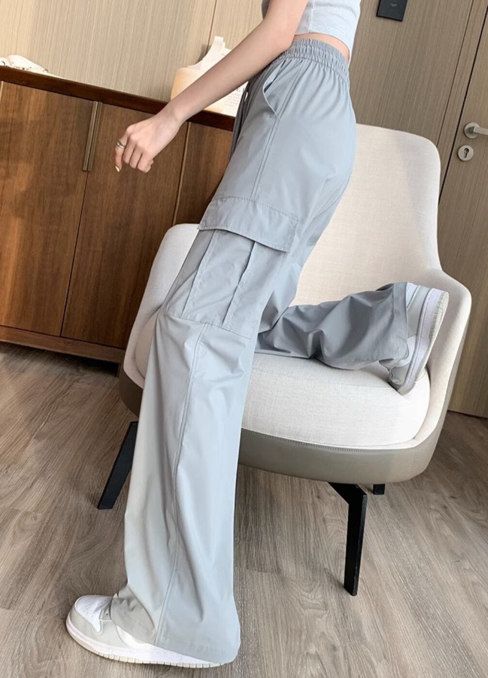 カーゴデザインのポケットが機能性を高め、シンプルながら存在感を示します。