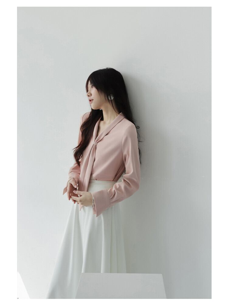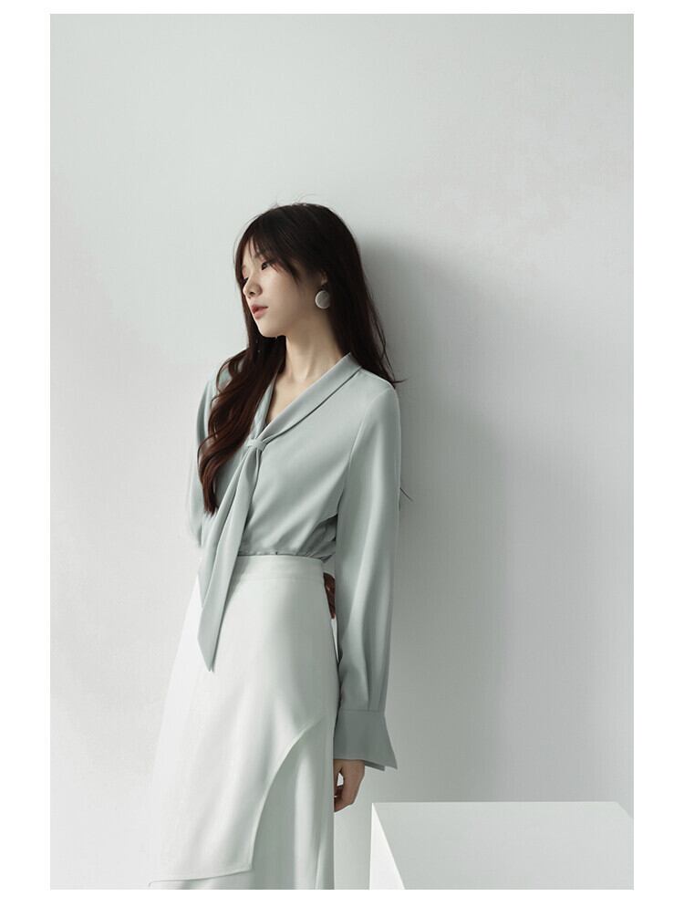 レディース トップス シャツ ブラウス 長袖 Vネック ボウタイ フェミニン コンサバ きれいめ シンプル 上品 こなれ感 エレガント 主役級 とろみ感 都会的 ロマンティック ナチュラル 清潔感 爽やか 無地 春 秋 冬 入学式 入園式 卒業式 卒園式 ロングシーズン 発表会 授業参観 ママ OL 通勤 デート レストラン 女子会 ショッピング ランチ お呼ばれ 着回し モテ 清楚 S M L XL 白 ホワイト くすみ ネイビー グレーブルー 大人カラー 春カラー ライトグリーン