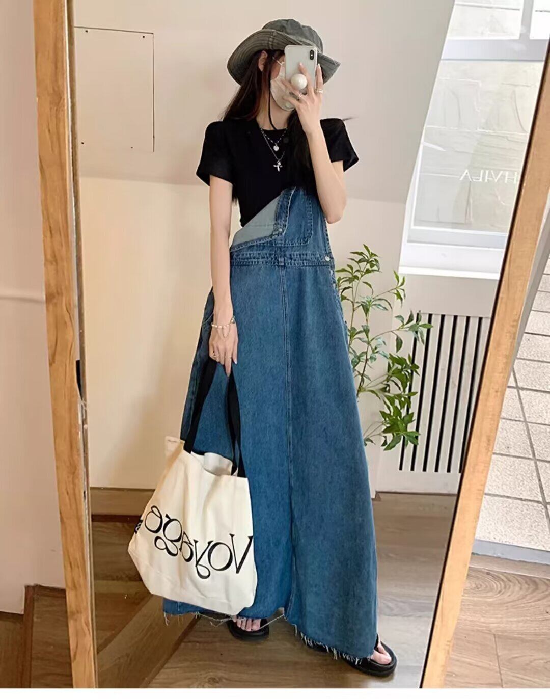 着回し力抜群のマキシ丈デニムサロペットです。