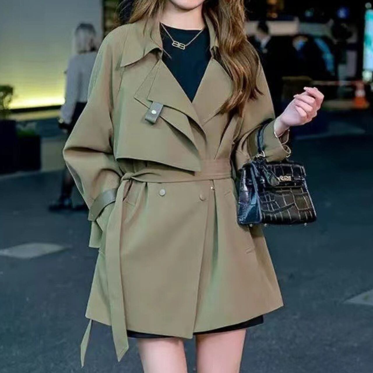 レディース アウター ミディアム トレンチ 膝上 長袖 襟付き 角襟 ウエストマーク ポケット ボタン ベルト付き きれいめ カジュアル 上品 おしゃれ かっこいい こなれ感 存在感 無地 春 秋 冬 ロングシーズン OL 通勤 学校 通学 デート お出かけ 女子会 ホテル ショッピング 合コン コンパ カフェ ランチ 重ね着 体型カバー 脚長 普段使い 着回し モテ 清楚 インスタ映え スタイルアップ S M L XL 2XL 大きいサイズ 黒 ブラック オフホワイト 大人カラー アーミーグリーン