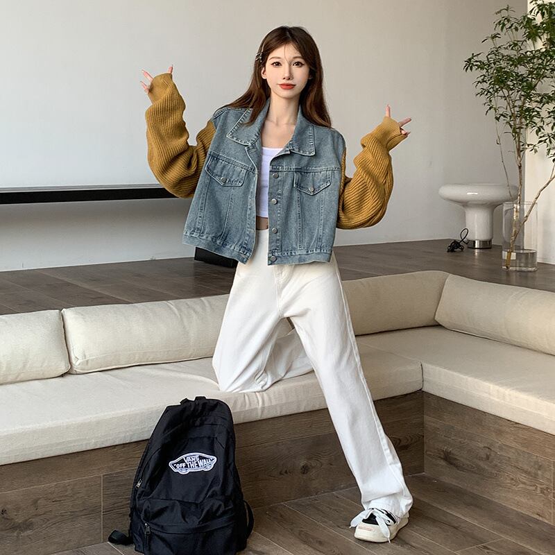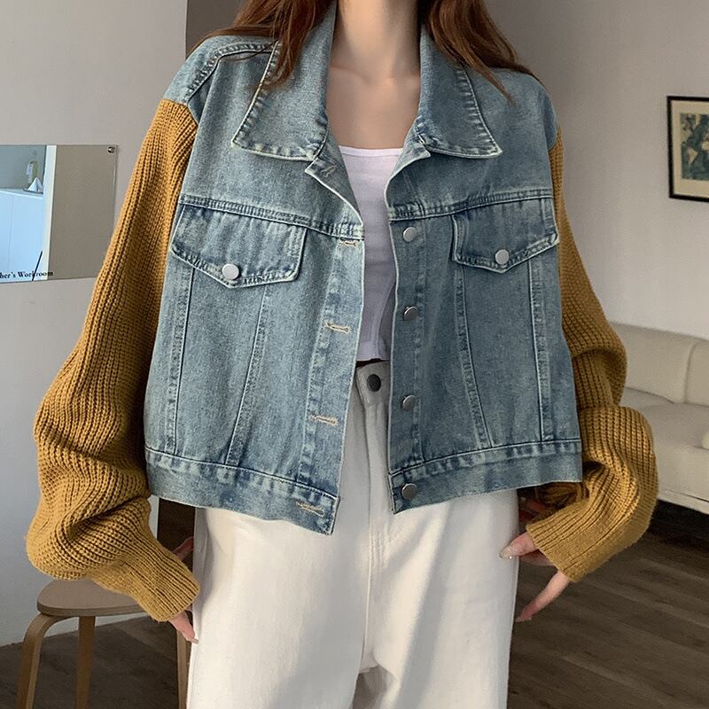 レディース トップス ジャケット ニット アウター 上着 ショート 長袖 襟付き 角襟 フェミニン ストリート ボタン デニム かわいい 大人可愛い きれいめ シンプル カジュアル 上品 おしゃれ かっこいい レトロ こなれ感 ラフ ガーリー ルーズ 個性的 クール モード系 エレガント モダン 主役級 存在感 抜け感 ラブリー キュート 都会的 カントリー ナチュラル 春 秋 デート お出かけ お泊まり 公園 女子会 休日 モテ 清楚 トレンド 流行 インスタ映え 定番 S M L XL グレー カーキ