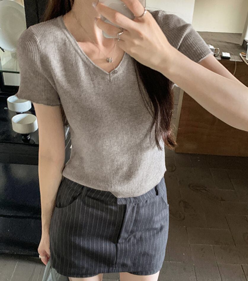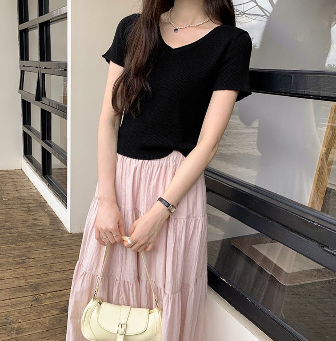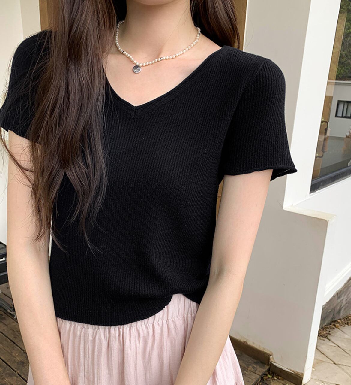 トップス プルオーバー サマーセーター サマーニット レディース クロップド丈 半袖 Vネック スリム 細身 フェミニン リブ 伸縮性 フィット 大人可愛い シンプル カジュアル おしゃれ こなれ感 ラフ ガーリー ルーズ とろみ感 抜け感 ナチュラル 清潔感 軽やか 爽やか 無地 春 夏 オフィス OL 通勤 デート お出かけ イベント 女子会 休日 ショッピング カフェ ランチ 韓国 オルチャン 楽ちん 普段使い 着回し トレンド スタイルアップ S M L オフホワイト ブラック グレー グリーン