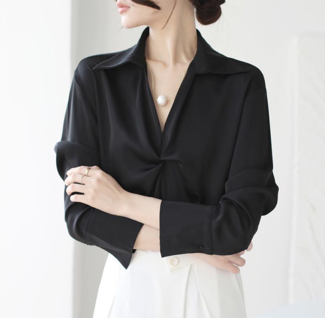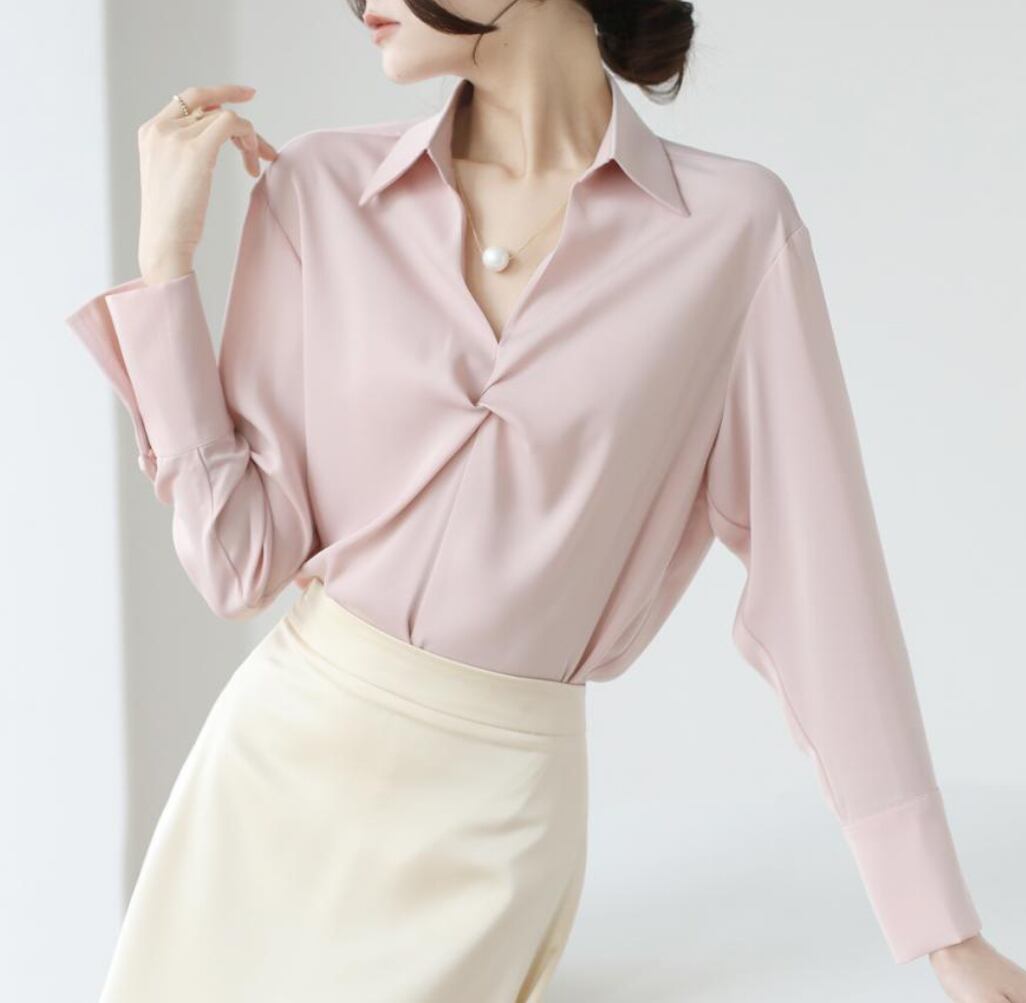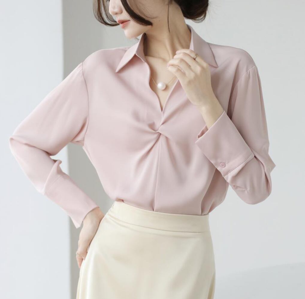 トップス シャツ ブラウス プルオーバー レディース 長袖 襟付き スキッパー ドレープ フェミニン フロントツイスト きれいめ 上品 おしゃれ こなれ感 ラフ エレガント 存在感 フォーマル とろみ感 抜け感 都会的 清潔感 着心地抜群 無地 春 秋 冬 授業参観 会議 MTG ミーティング オフィス OL 通勤 パーティー イベント リゾート 女子会 ホテル 発表会 お呼ばれ 韓国 オルチャン 普段使い 着回し 清楚 トレンド スタイルアップ S M L XL オフホワイト ブラック ピンク