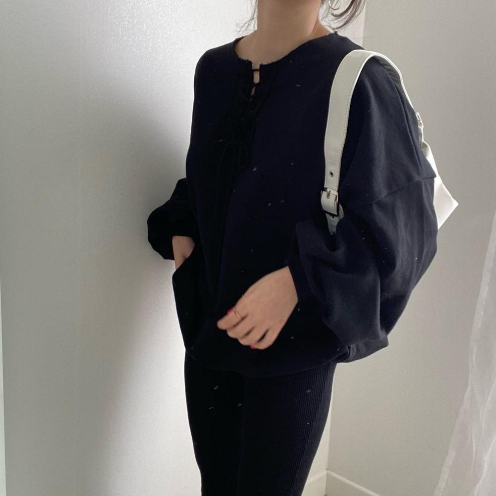 レディース トップス プルオーバー 部屋着 長袖 ボリューム袖 ドロップショルダー ノーカラー オーバーサイズ 編み上げ レースアップ スウェット カジュアル おしゃれ こなれ感 ラフ スポーティー 主役級 存在感 抜け感 アクティブ ナチュラル リラックス 無地 春 秋 冬 ロングシーズン ママ 学生 学校 通学 お出かけ アウトドア キャンプ 公園 女子会 休日 ショッピング モノトーン 楽ちん 体型カバー 普段使い インスタ映え ワンサイズ オーバーサイズ 黒 ブラック ライトグレー