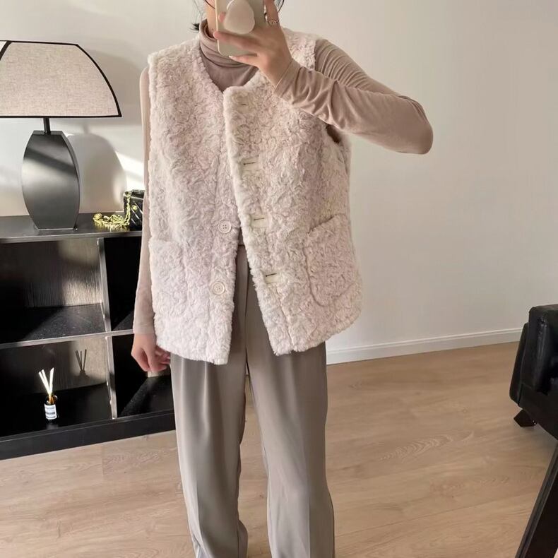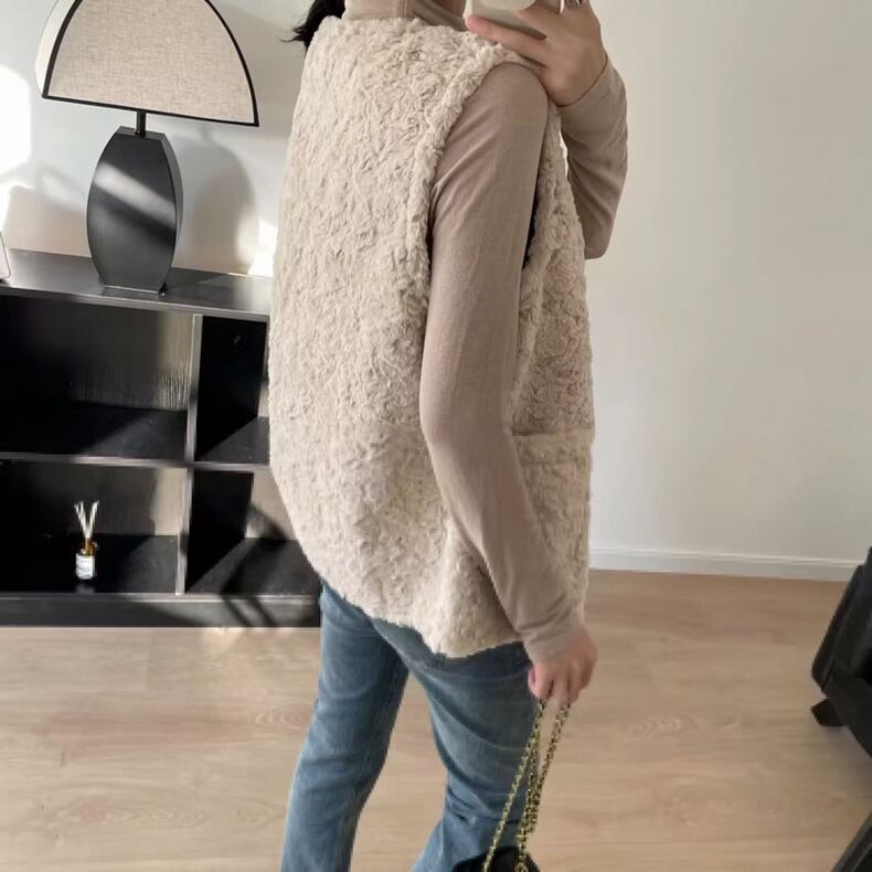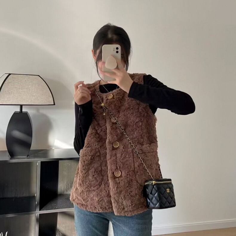 レディース トップス ジャケット ベスト アウター 上着 前開き 袖なし ノースリーブ ノーカラー フェミニン ストリート もこもこ ボタン ファー かわいい 大人可愛い きれいめ シンプル カジュアル 上品 おしゃれ かっこいい レトロ こなれ感 ラフ ガーリー ルーズ 個性的 クール モード系 エレガント モダン 主役級 存在感 抜け感 ラブリー キュート 都会的 クラシカル ベーシック アメリカン カントリー ロマンティック ナチュラル 無地 デート お出かけ お泊まり トレンド インスタ映え 定番