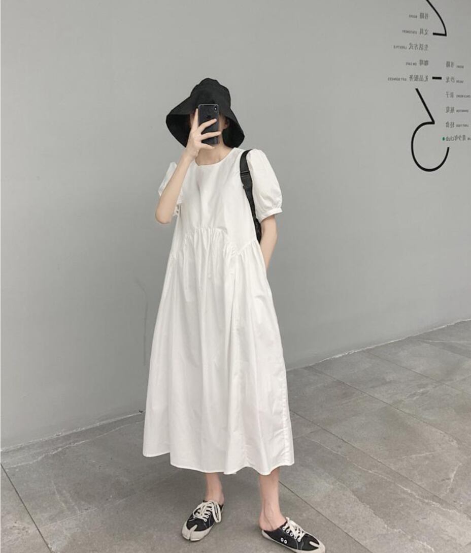 レディース ワンピース レディース ミモレ 半袖 ボリューム袖 パフスリーブ フレアスリーブ Uネック ラウンドネック フレア Aライン ウエストマーク ハイウエスト 大人可愛い カジュアル 涼しげ 軽やか 通気性 無地 夏 デート お出かけ リゾート 旅行 海 プール レストラン 公園 女子会 休日 ガーデン ショッピング お花見 合コン コンパ カフェ ランチ 重ね着 お揃い 双子 韓国 オルチャン コーデ 楽ちん 体型カバー モテ 清楚 M L XL 2XL 大きいサイズ ゆったり ゆる 白 ホワイ