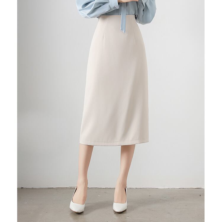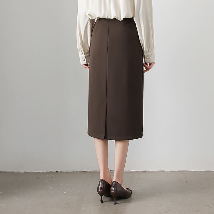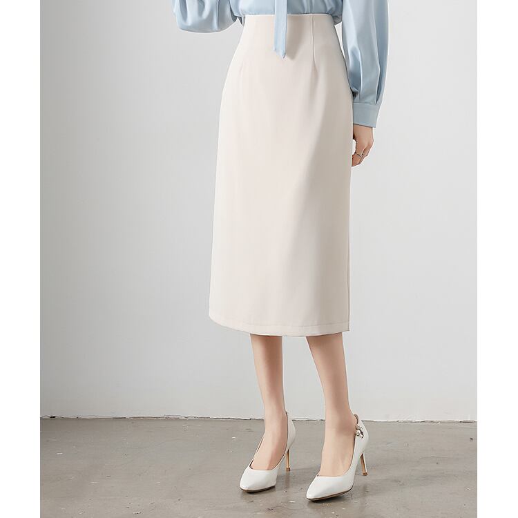 すっきりとしたスリムなAラインシルエットで、女性らしさと清楚な印象を兼ね備えたミモレスカート。