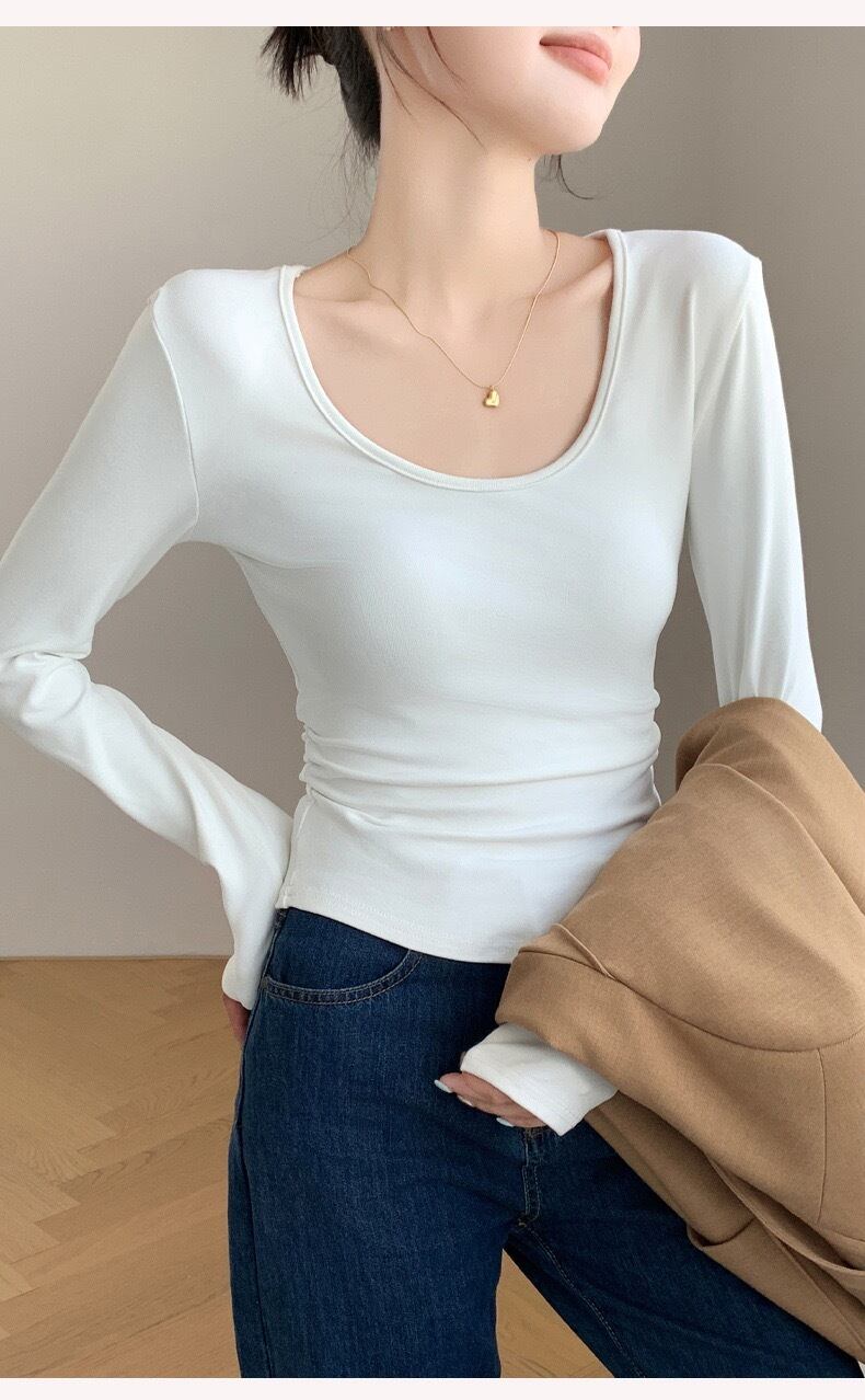 レディース トップス カットソー 部屋着 インナー 長袖 Uネック 襟なし ノーカラー タイト スリム 細身 スマート シンプル カジュアル ラフ ベーシック ナチュラル 清潔感 リラックス 無地 春 秋 冬 ロングシーズン ママ OL 通勤 お出かけ お泊まり 公園 カフェ ランチ 重ね着 楽ちん 暖かい 防寒 普段使い 着回し 定番 S M L XL 白 ホワイト 黒 ブラック 紫 茶色 ブラウン 黄色 イエロー ベージュ カーキ ベーシックカラー 大人カラー 春カラー 秋カラー