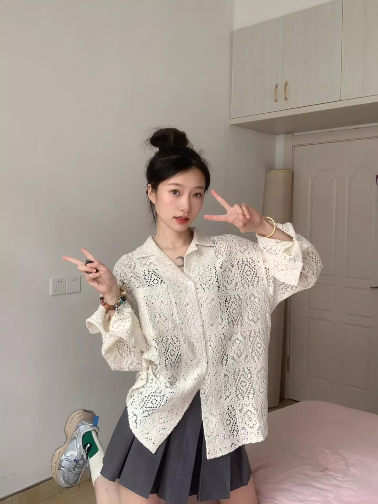 色展開は定番のホワイトから、どんなスタイルにも合わせやすい大人カラーをご用意しています。こなれ感を演出しつつ、キュートな印象もプラスした一着です!