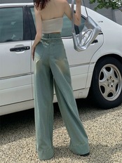 丈が長く、裾に向かって大きく広がるレイヴパンツは、体型カバーと脚長効果を同時に叶える優秀アイテム。ウォッシュ加工が施されたデニム素材は、カジュアルながらもヴィンテージライクな風合いで、こなれ感を演出します。ハイウエストとタック入りのデザインがウエストまわりをすっきり見せ、ストリート感のあるラフな着こなしが完成。普段使いにも活躍する、個性と実用性を兼ね備えた一本です。
