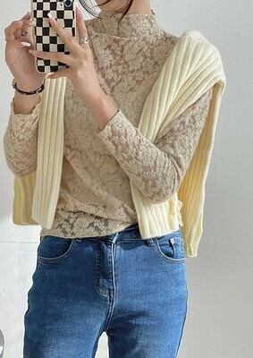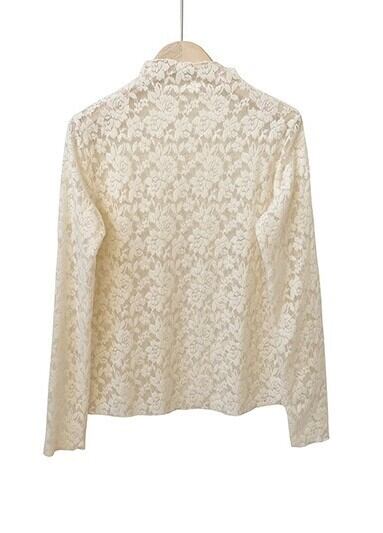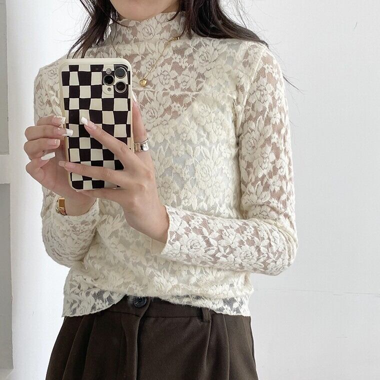 繊細な花柄レースが目を惹くハイネックトップス。ほんのり透け感のあるデザインで、重ね着するだけで大人のフェミニンスタイルが完成します。