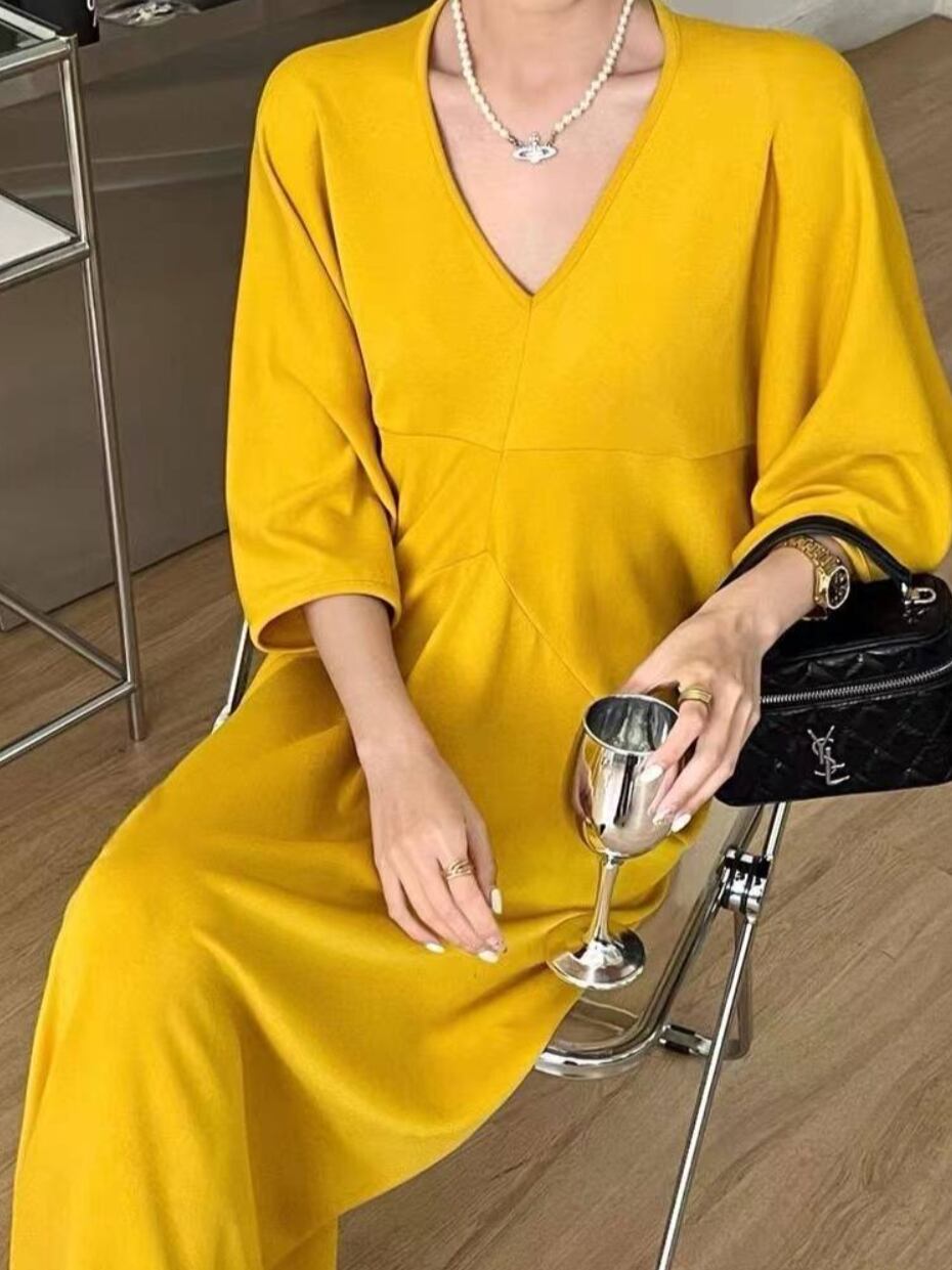 レディース ワンピース レディース ミモレ 半袖 Vネック フレア きれいめ シンプル 上品 おしゃれ こなれ感 クール モード系 エレガント モダン 存在感 ベーシック ナチュラル 清潔感 涼しげ リラックス 軽やか 爽やか 無地 夏 デート お出かけ イベント リゾート 旅行 海 プール レストラン ビーチ 公園 女子会 休日 高原 ガーデン ショッピング 合コン コンパ カフェ モノトーン ランチ お呼ばれ ゆったり ゆる フリーサイズ ワンサイズ オーバーサイズ ブラック イエロー