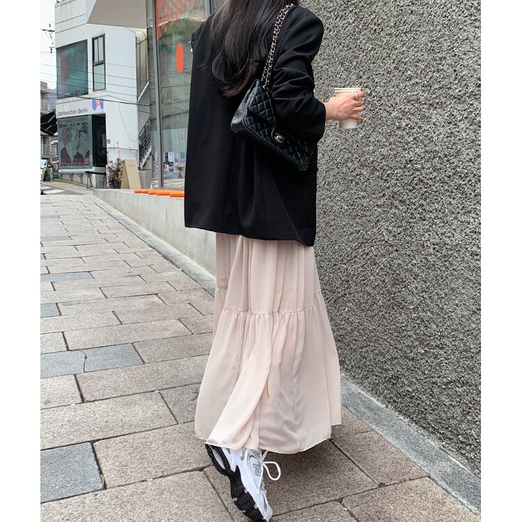 無地でありながら透け感を取り入れることで、抜け感のある大人可愛い雰囲気に。
