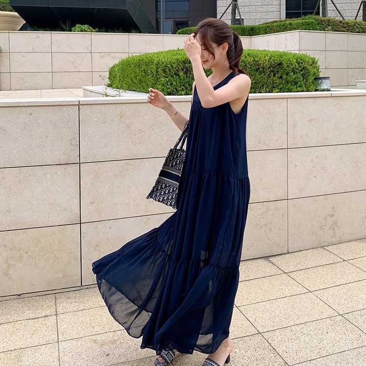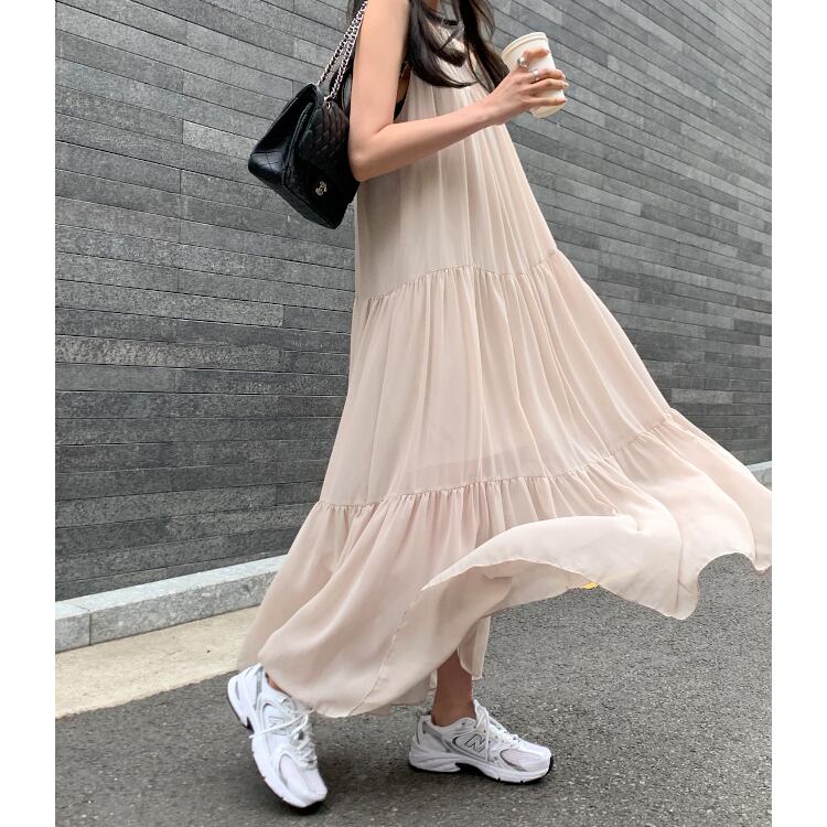 レディース ワンピース フレア ロング マキシ 袖なし ノースリーブ ラウンドネック Aライン ティアード 透け感 切り替えデザイン かわいい 大人可愛い きれいめ シンプル 上品 おしゃれ こなれ感 エレガント 存在感 キュート 都会的 ロマンティック 涼しげ 軽やか 爽やか 無地 夏 ママ マタニティ OL デート パーティー イベント レストラン ホテル ショッピング 発表会 コンサート 合コン コンパ お呼ばれ オケージョン モテ インスタ映え ワンサイズ 黒 ブラック ベージュ ベーシックカラー